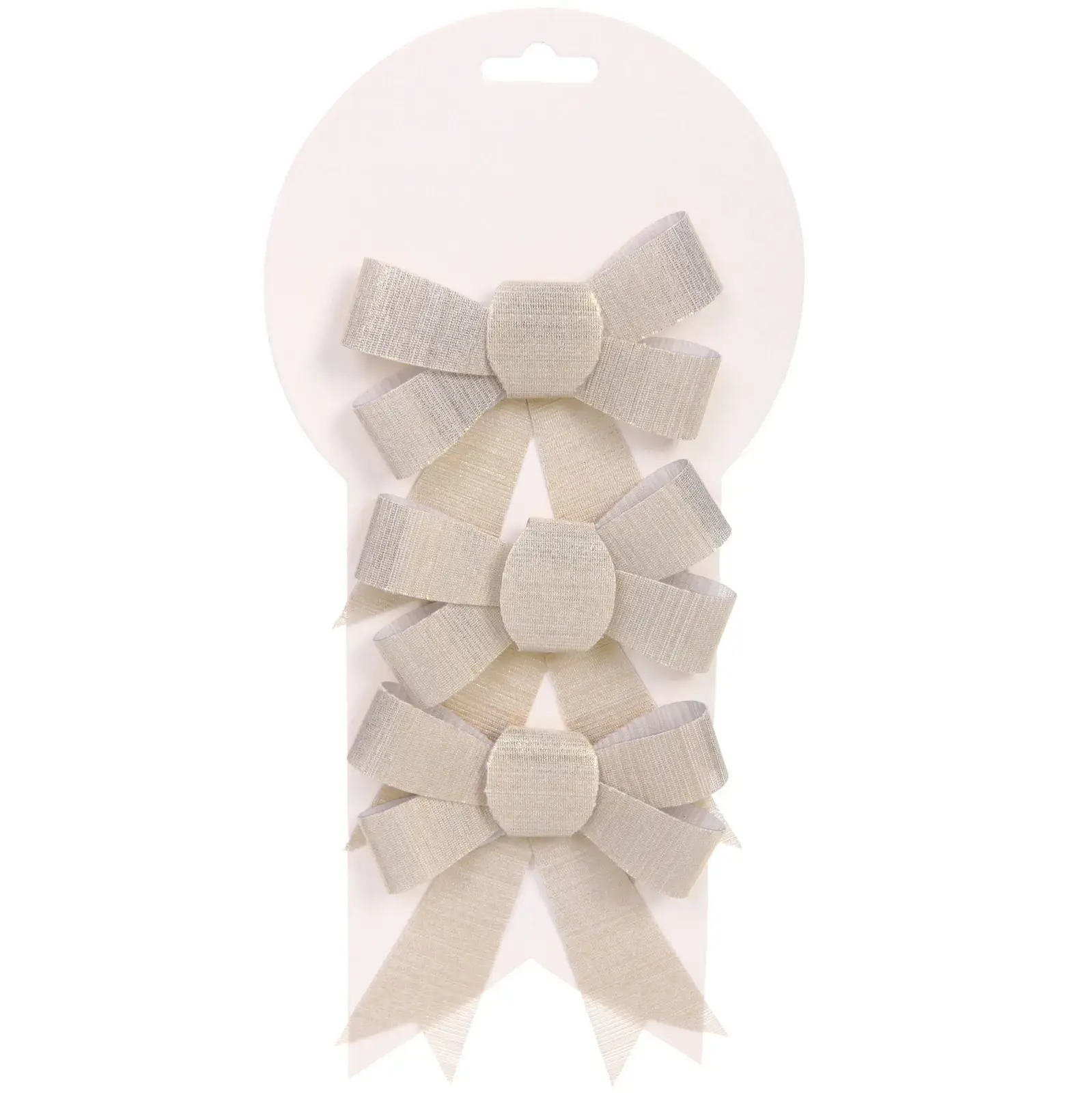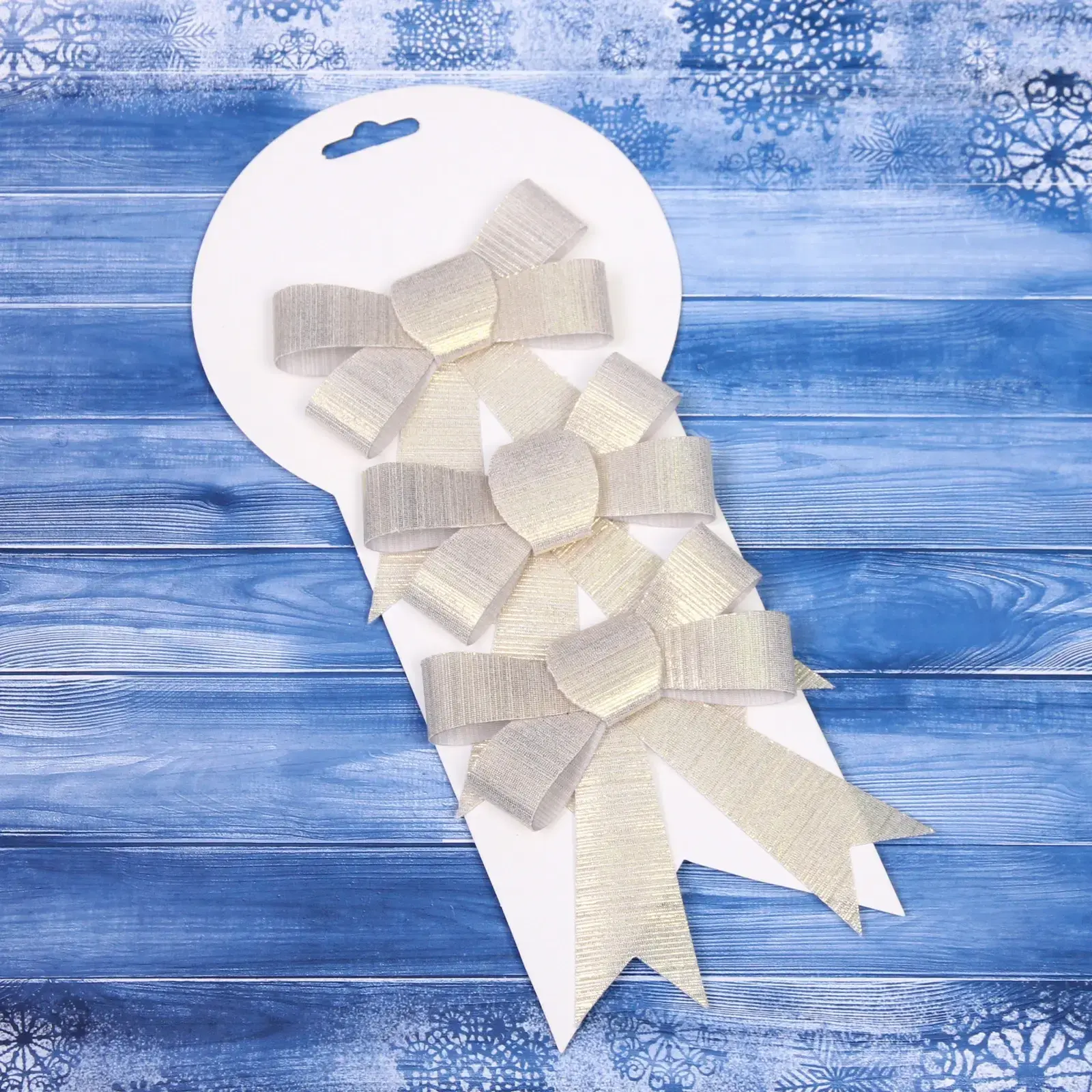 Размер каждого банта составляет 9х12 см, что делает их заметными, но не слишком громоздкими. В наборе вы получите 3 банта, что позволит вам создать целую композицию из украшений. Их светло-серый цвет с легким блеском добавит нотку элегантности в ваш декор.
