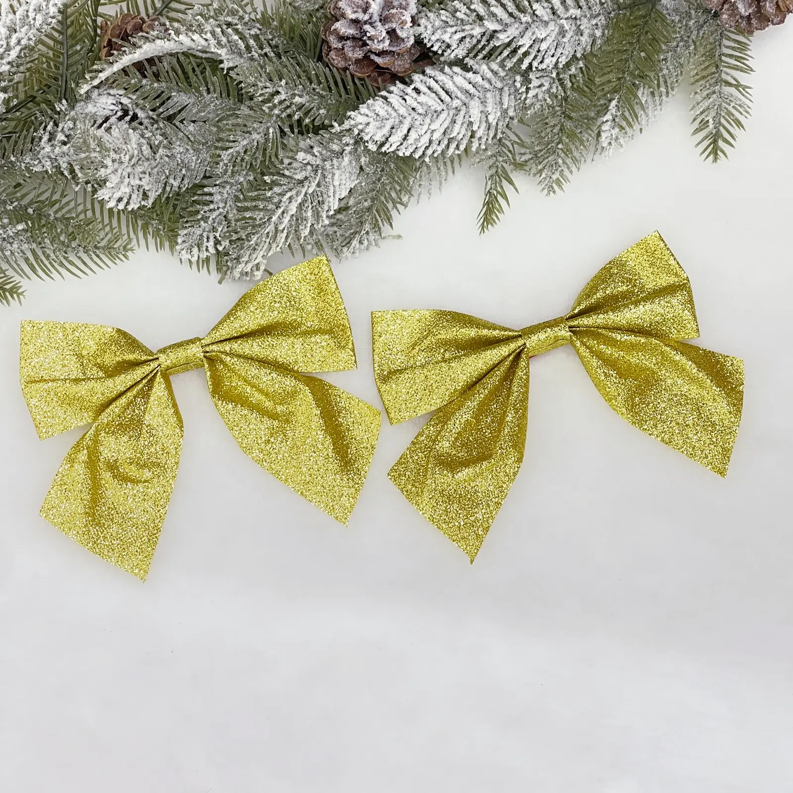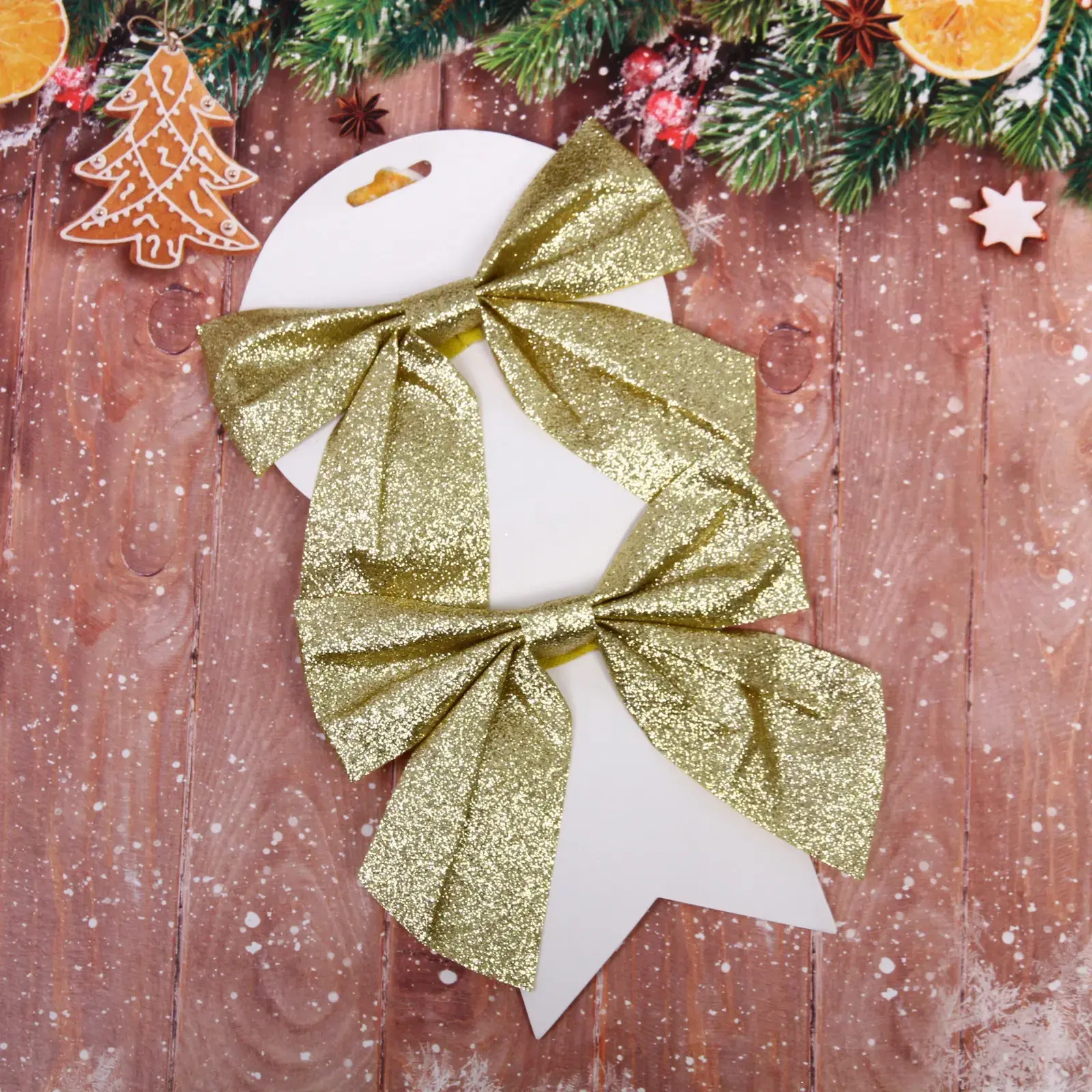 Каждый бант имеет размеры 15х15 см и выполнен из синтетического материала, что обеспечивает их устойчивость к повреждениям и долговечность. Золотой цвет с блестящей текстурой делает их универсальными для любого стиля оформления. Эти банты станут отличным дополнением к вашему новогоднему декору и подарят радость вам и вашим близким.