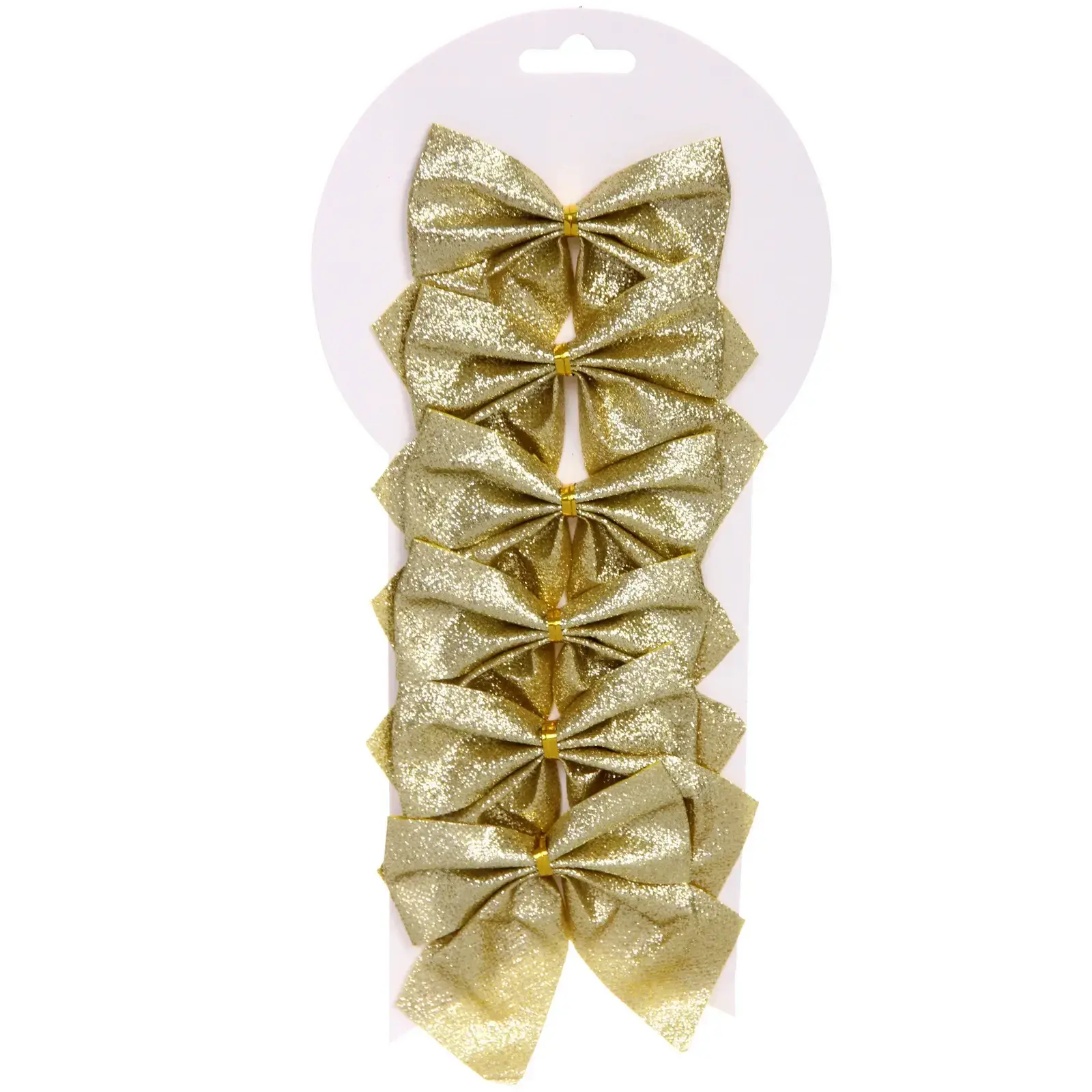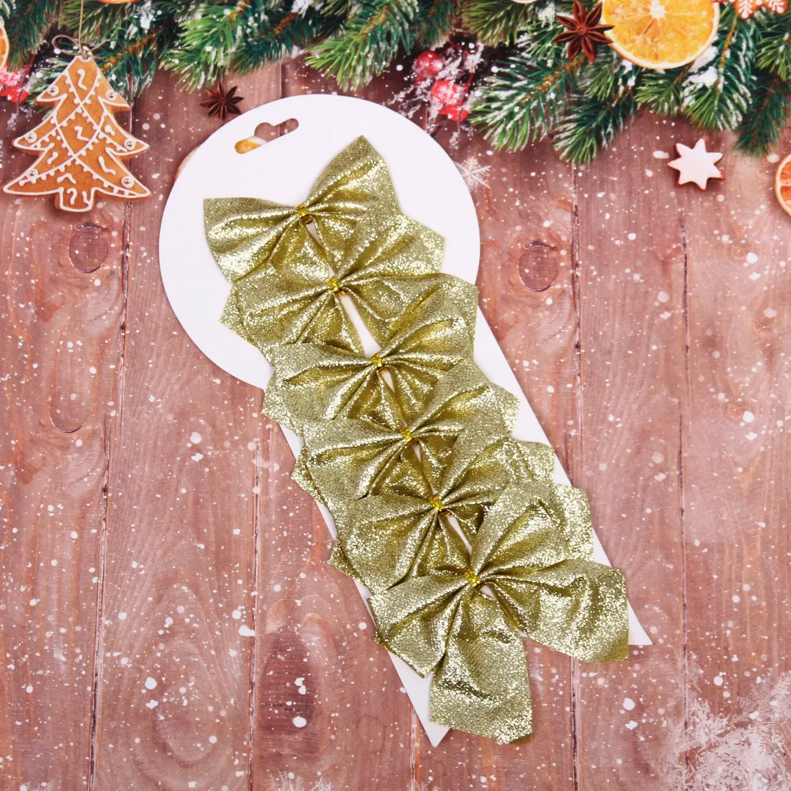 Выбирая эти банты, вы получаете не только красивый, но и качественный продукт. Изготовленные из текстиля, они отличаются долговечностью и устойчивостью к повреждениям. Блестящая поверхность придаёт им особый шарм, а золотой цвет гармонично вписывается в любой новогодний стиль. Набор из 6 штук позволяет вам украсить сразу несколько элементов декора, создавая единый стиль.
