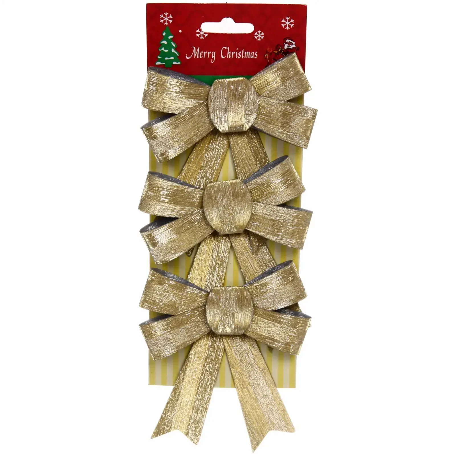Размер каждого банта составляет 11 см, что делает их заметными, но не слишком громоздкими. В упаковке вы получите 3 банта, что позволит вам украсить несколько объектов или создать гармоничное оформление. Эти банты станут отличным дополнением к вашему новогоднему декору и подарят атмосферу праздника.