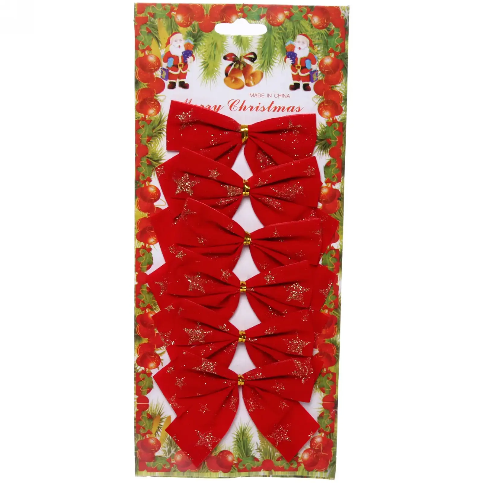 Банты легко крепятся к веткам ёлки или могут использоваться для оформления подарков. Они подойдут для любого праздника, создавая атмосферу праздника и радости. Набор состоит из 6 штук, что позволяет вам украсить не только ёлку, но и другие элементы интерьера.