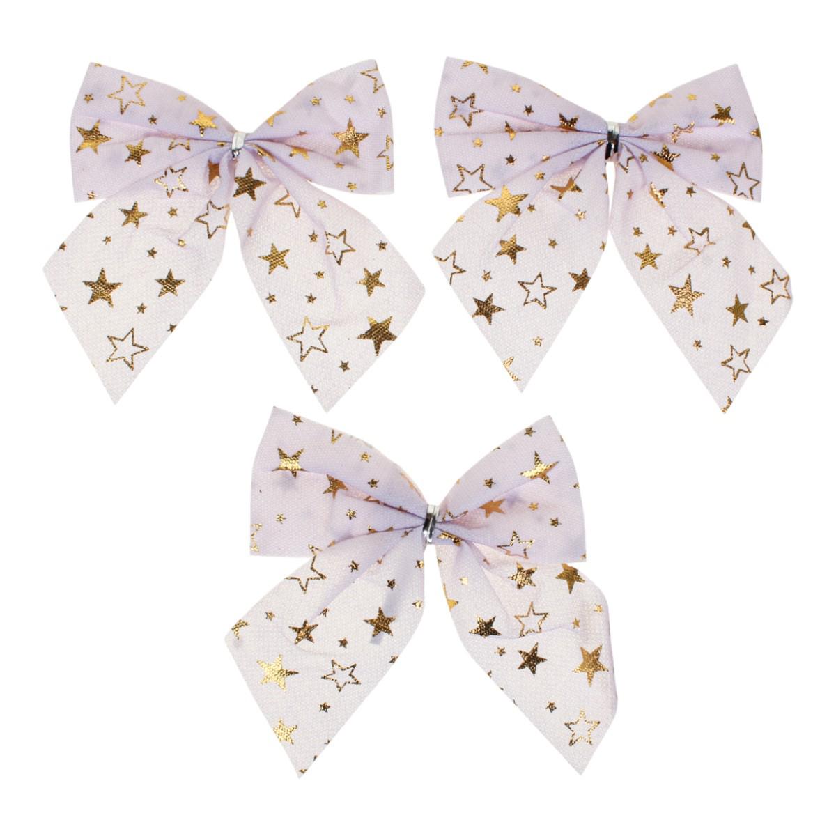 Идеально подходит для оформления новогодних деревьев, праздничных композиций, гирлянд и подарков. Лёгкие и удобные в размещении, банты можно закрепить на ветках, лентах или других декоративных элементах. Комплект из 3 штук позволяет создавать гармоничные ансамбли или распределить украшения в разных зонах интерьера.