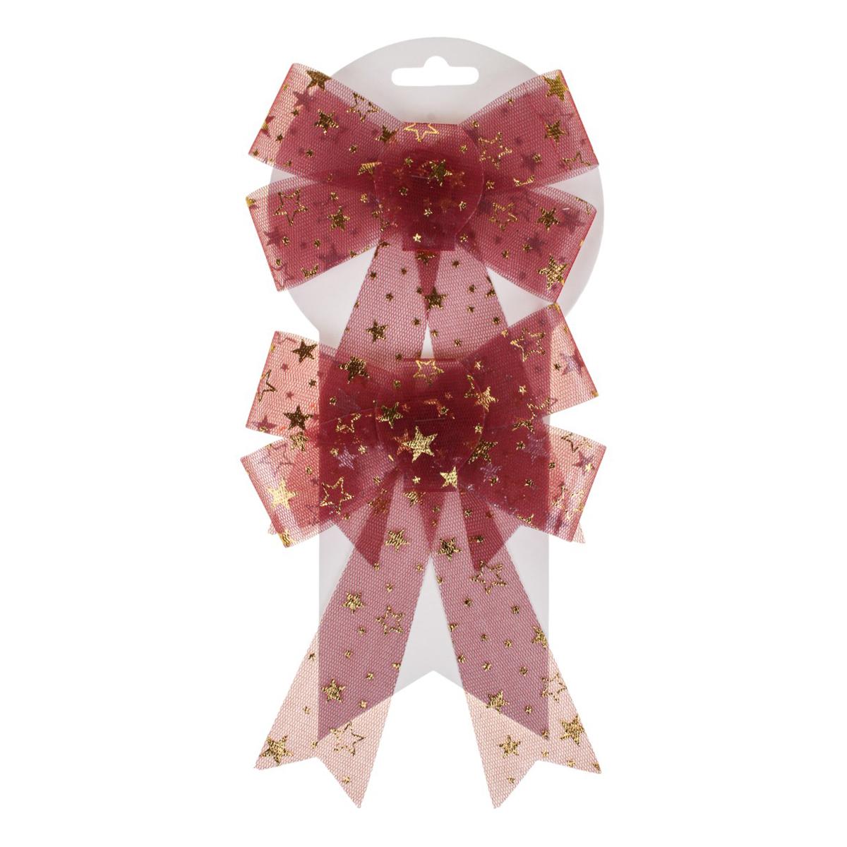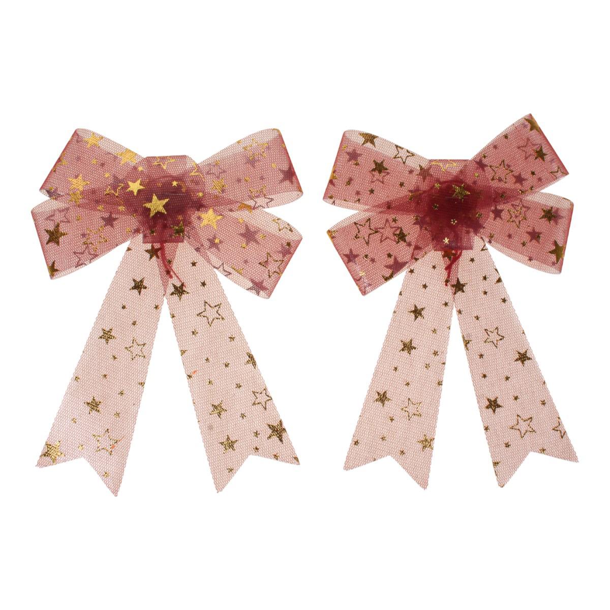Бант на ёлку, набор 2 шт, светло‑розовый с золотыми звёздочками, 14×18 см, полупрозрачный, лёгкий