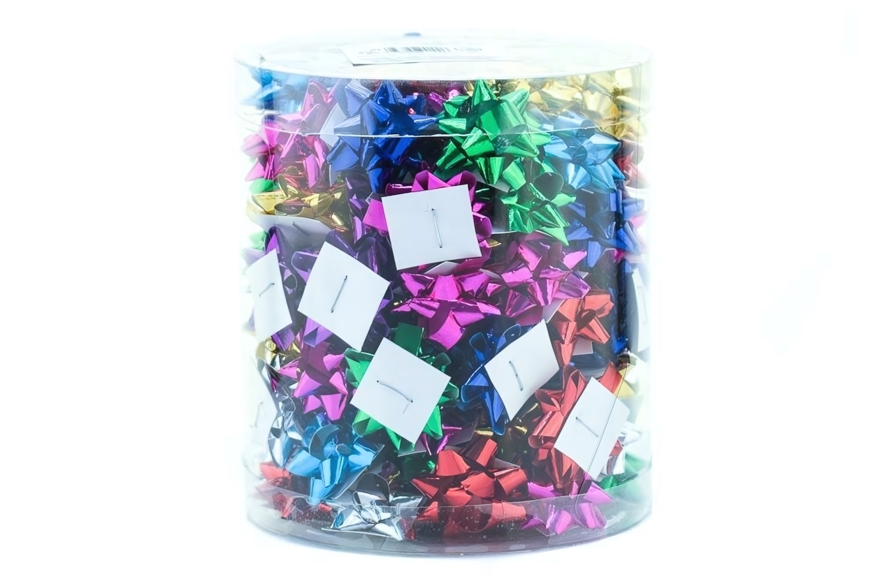 Набор декоративных бантиков, 100 шт, 3 см, 6 цветов, блестящие, в прозрачном контейнере