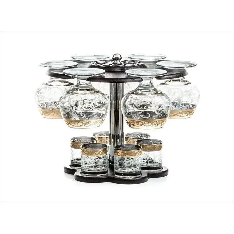 Барная стойка 'Барокко' с 6 бренди и 6 стопками, стекло/металл
