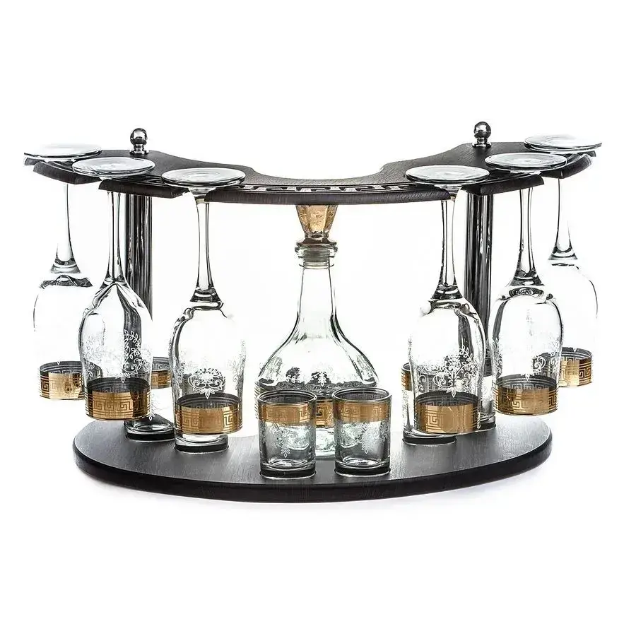 Барная стойка «Фурор» с набором 6 бокалов и 6 стопок, стекло, золотая окантовка