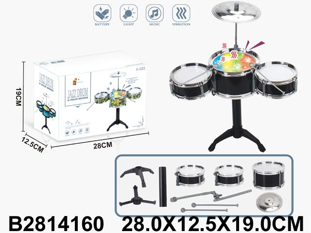 Барабанная установка детская "JAZZ DRUM", свет/звук, пластик, цвет чёрный с хромом