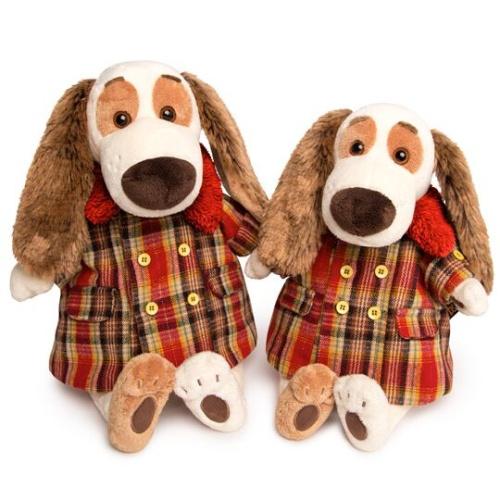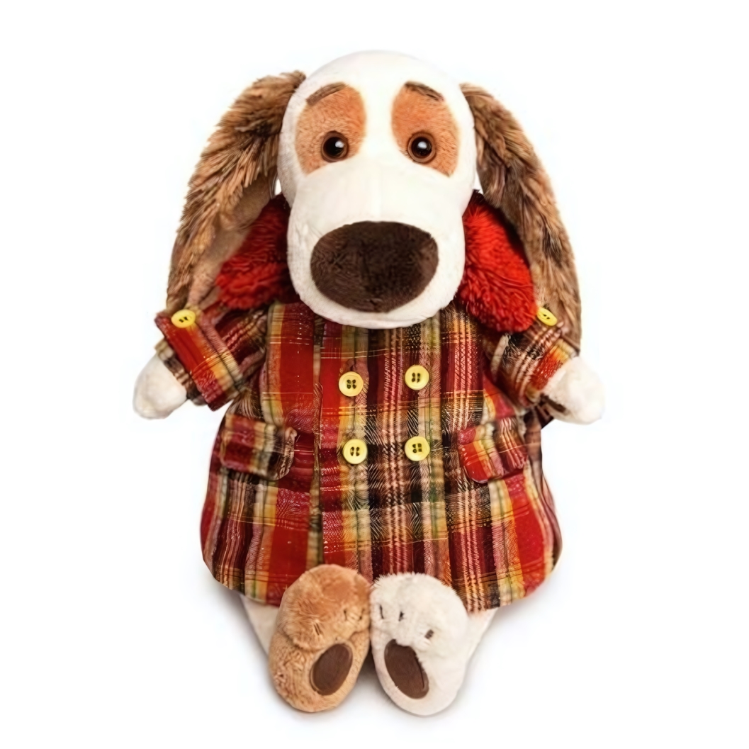 Мягкая игрушка собака «Бартоломей» в уютном пальто в клетку