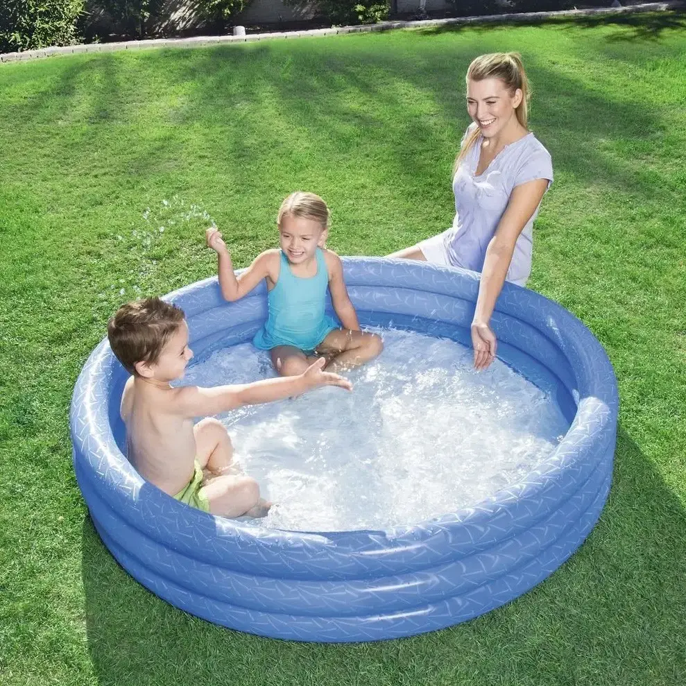 Размеры бассейна составляют 152 см в диаметре и 30 см в высоту, что делает его идеальным для маленьких детей. Он имеет жесткое дно из ПВХ-пленки, что обеспечивает дополнительную устойчивость. Не упустите возможность подарить вашему ребенку радость и комфорт с этим замечательным надувным бассейном!