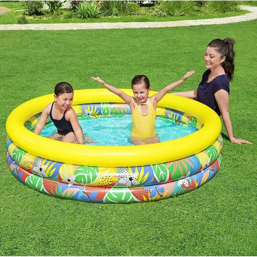 Создайте атмосферу летнего веселья с нашим надувным бассейном, который станет настоящим центром развлечений для ваших детей. С ярким тропическим дизайном и вместимостью до 508 литров, этот бассейн обеспечит часы радости и комфорта в жаркие дни. Он идеально подходит для детей от 2 лет и старше, что делает его отличным выбором для семейного отдыха на свежем воздухе.