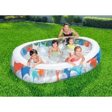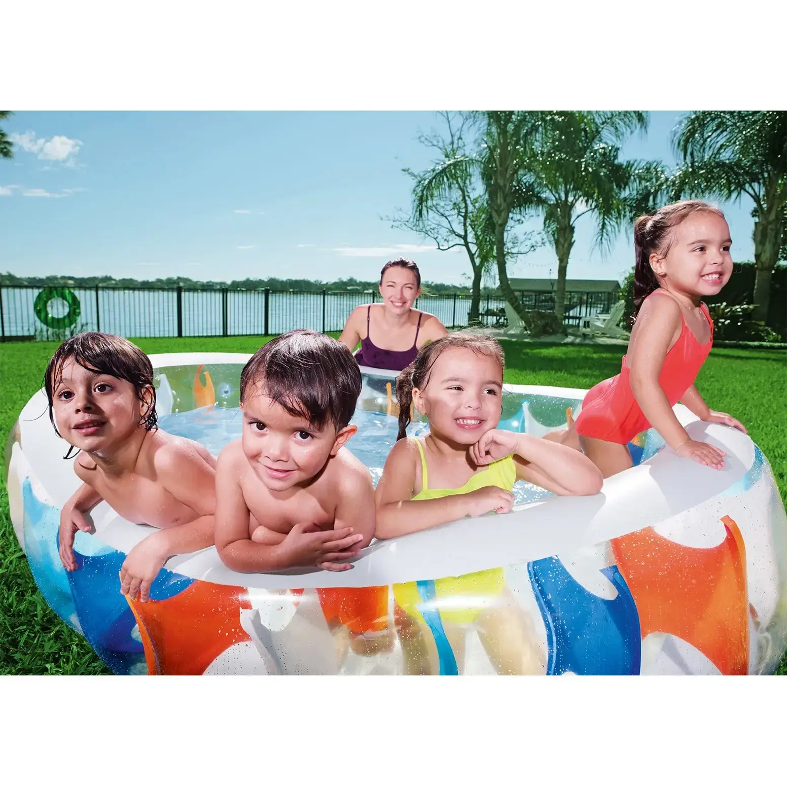 Яркий дизайн с цветными вставками превратит ваш участок в зону отдыха, где дети смогут безопасно играть, а взрослые — охлаждаться в жаркие дни. Широкая горловина и плоское дно позволяют легко менять воду и поддерживать гигиену.