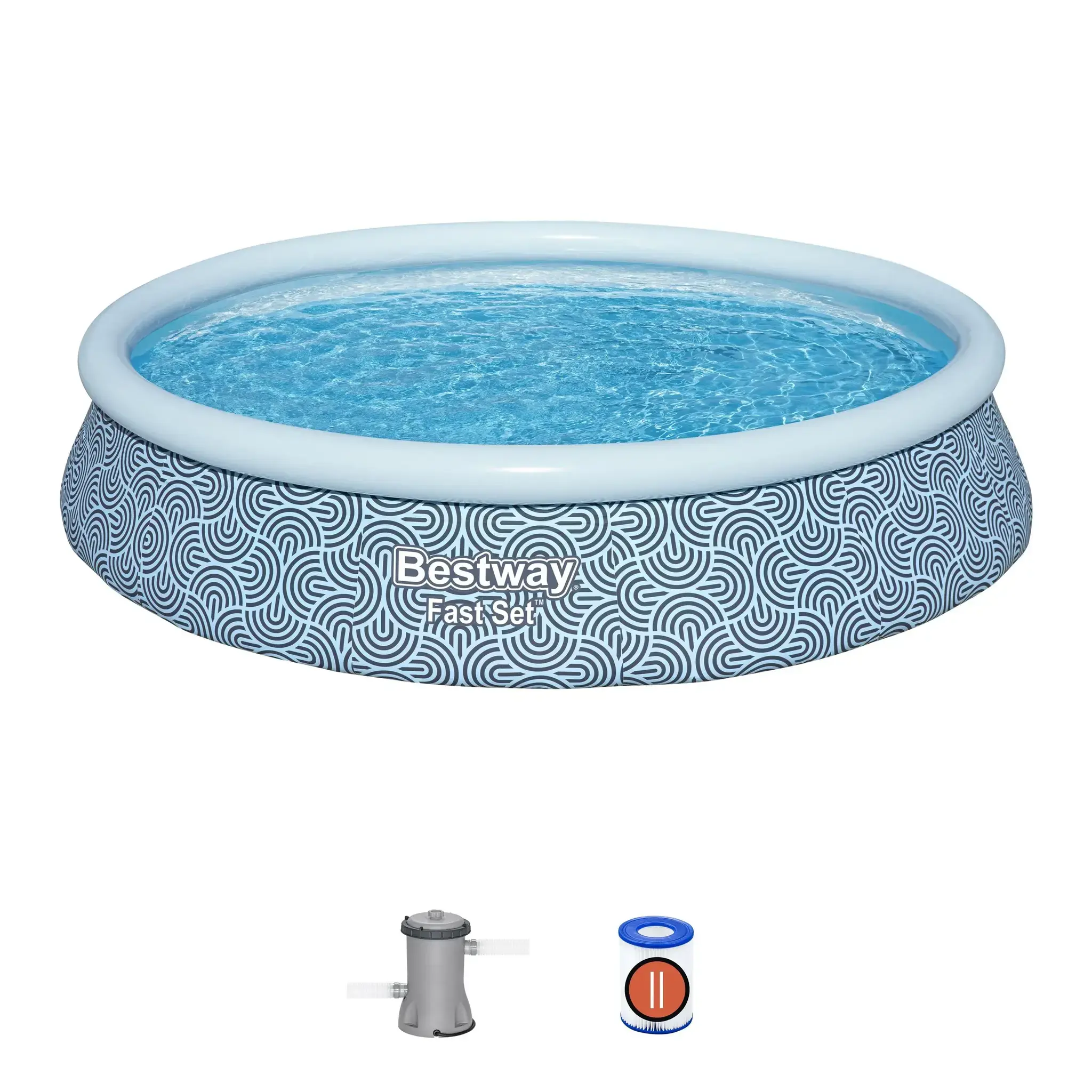 Создайте идеальное место для летнего отдыха с надувным бассейном 'Fast Set'. Его размеры 396х84 см обеспечивают достаточно пространства для комфортного купания взрослых и детей. В комплект входит мощный фильтр-насос производительностью 2006 л/ч, который поддерживает чистоту воды без усилий.