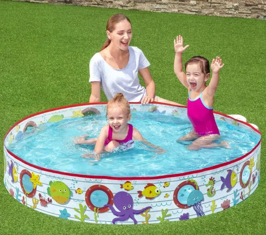 Этот бассейн не требует надувания, что делает его установку быстрой и простой. Просто разверните его на ровной поверхности, залейте водой и наслаждайтесь. Он подходит для детей от 2 лет, что делает его отличным выбором для семейных развлечений.