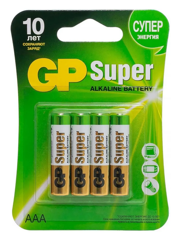 Батарейки GP Super Alkaline AAA, 4 шт, надежные, долго служат