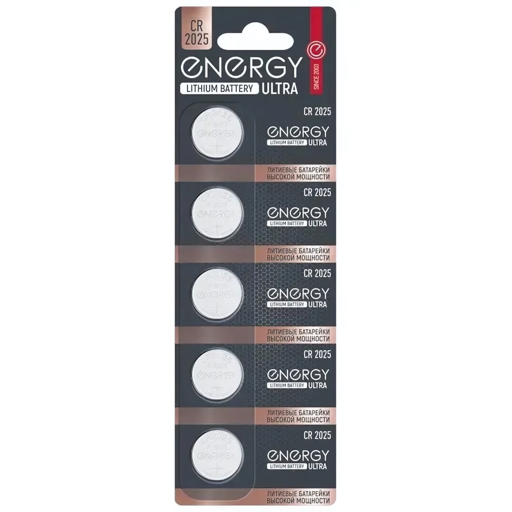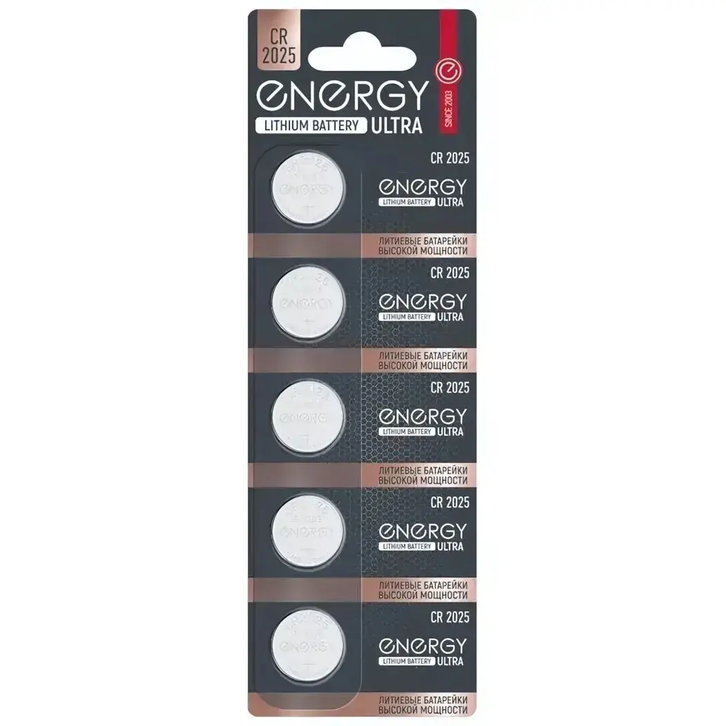 Батарейка литиевая Energy Ultra CR2025, комплект 5 штук, высокая мощность, долгий срок службы