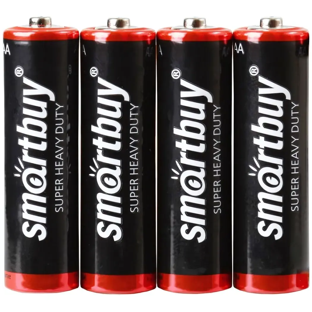 Каждая батарейка имеет стандартный размер AA и поставляется в упаковке по 4 штуки. Корпус батареек выполнен в черном цвете с красными верхними и нижними частями, что придает им стильный вид. На каждой батарейке присутствует надпись 'SUPER HEAVY DUTY', что подчеркивает их высокое качество и надежность. Выбирая батарейки R3 SmartBuy, вы получаете не только надежный источник питания, но и уверенность в том, что ваши устройства всегда будут работать без перебоев.