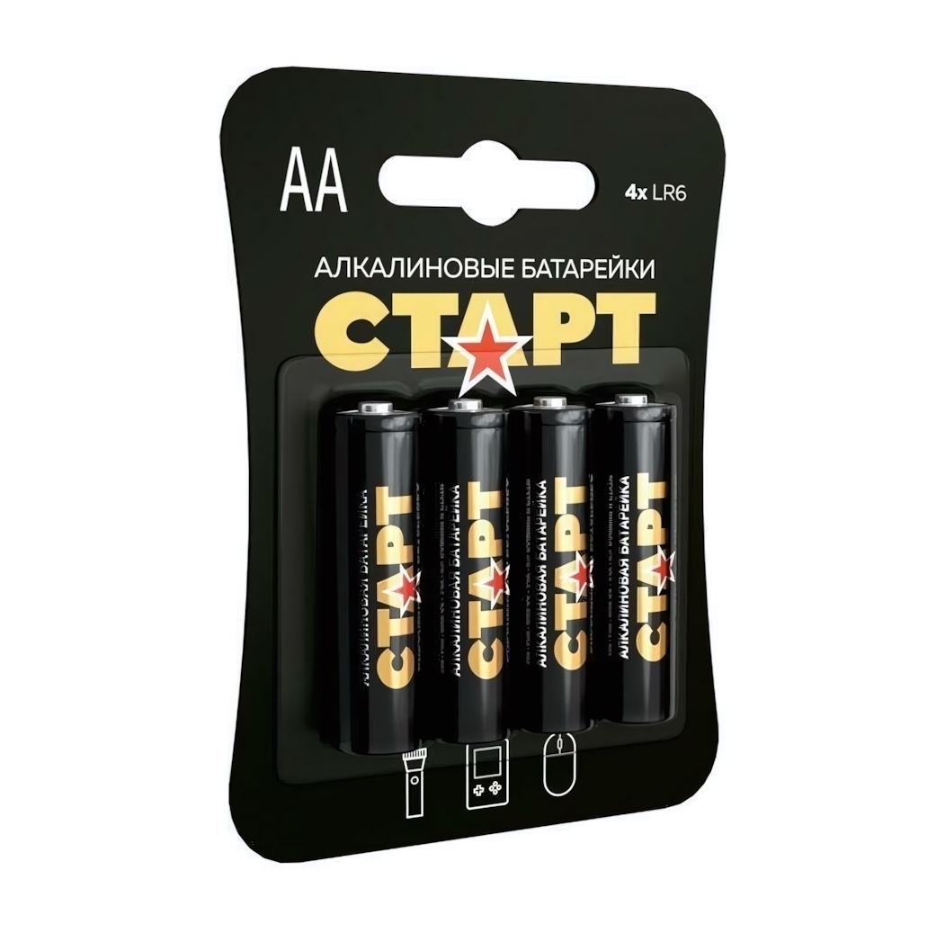 Батарейки алкалиновые СТАРТ LR6 (АА), 4 шт в блистере, надежные и долговечные