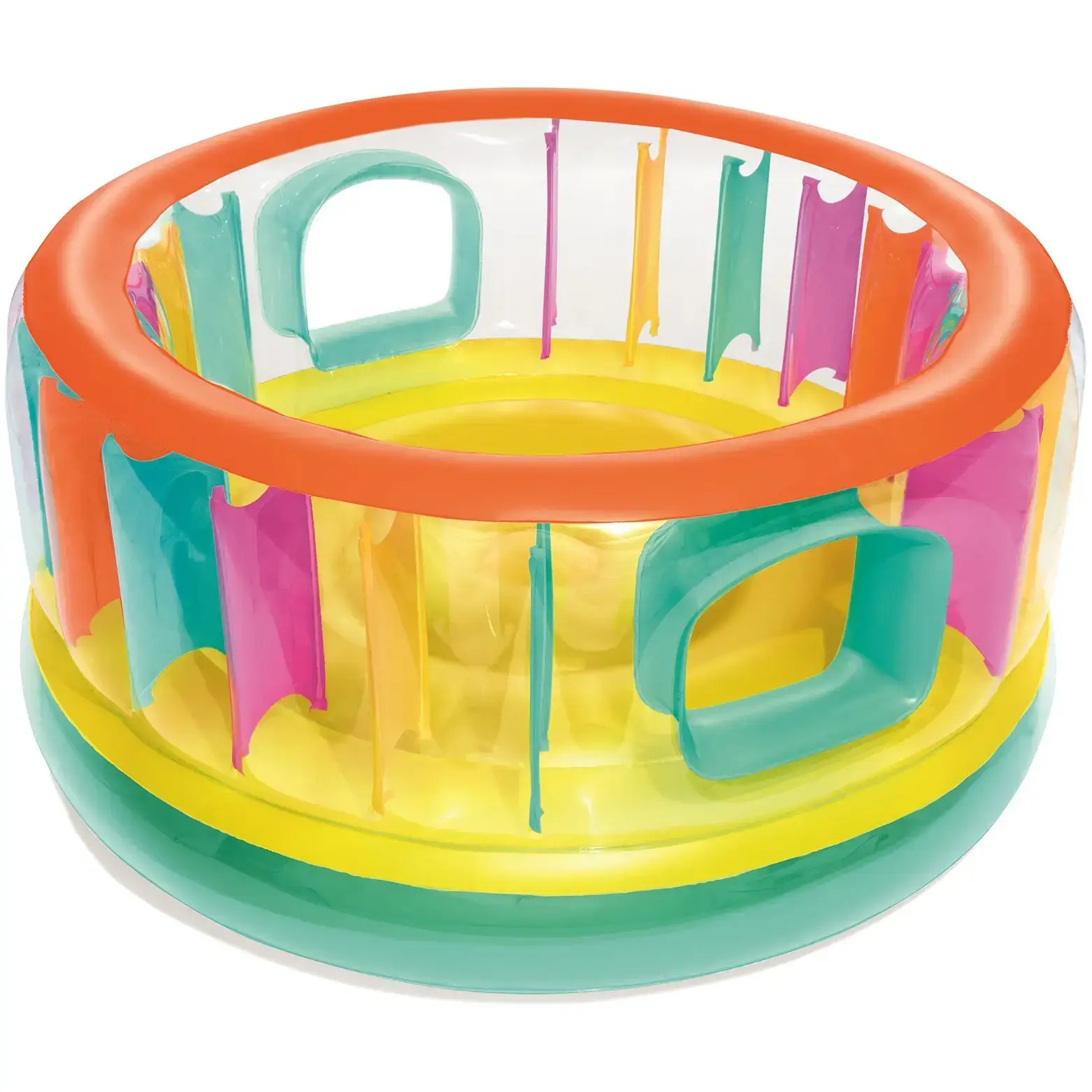 Батут выполнен из качественного ПВХ, что гарантирует его устойчивость к повреждениям и долговечность. Яркие цвета и веселый дизайн делают его идеальным выбором для летних игр на улице. Не упустите возможность подарить вашим детям радость и активный отдых с надувным батутом Bounce Jame!