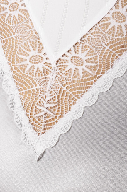 Комбинация выполнена из высококачественных материалов: 70% полиэстера и 30% полиамида, что обеспечивает отличную воздухопроницаемость и комфорт при носке. Она подходит для размеров LXL (46-48), что делает ее универсальным выбором для большинства женщин. Используйте эту комбинацию как часть свадебного образа или для романтического вечера.