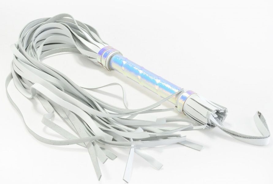 Плеть состоит из гибкой ударной части, выполненной из 20-23 гладких кожаных лент шириной 1 см, и жёсткой рукояти, украшенной серебристо-перламутровой вставкой. Хвостовая часть надёжно соединена с рукоятью, что обеспечивает максимальную прочность и долговечность. На конце ручки располагается ремешок-петля, который обеспечивает удобство использования и хранения.