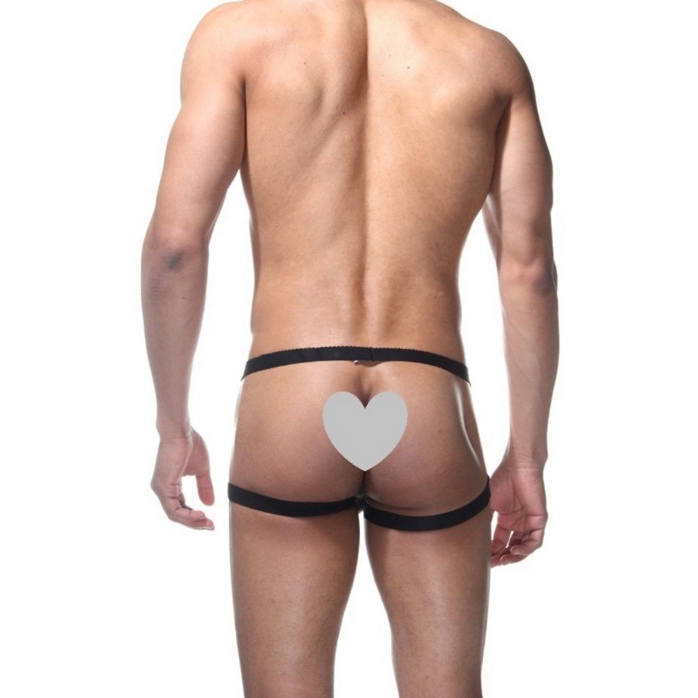 Особенности включают полностью открытые ягодицы, что делает их удобными для интимных моментов и эстетичной демонстрации формы. Черные эластичные резинки по бокам и пояса фиксируют изделие на теле, не вызывая дискомфорта и не сдавливая.