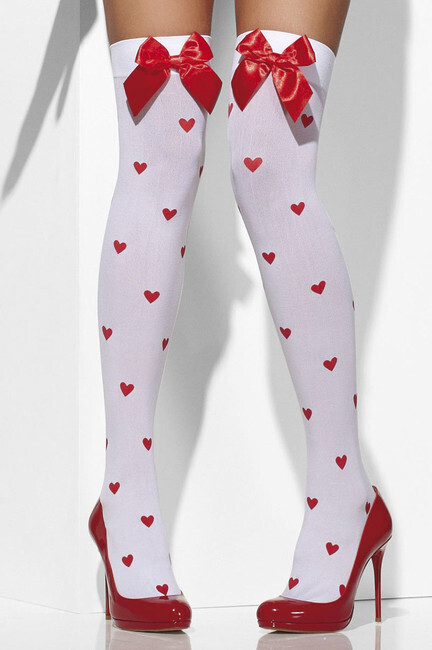 Нейлоновые чулки с игривыми сердечками и атласными бантиками — идеальный акцент для романтического настроения. Сочетание классической белой основы с яркими красными элементами создаёт гармоничный баланс между нежностью и страстью.