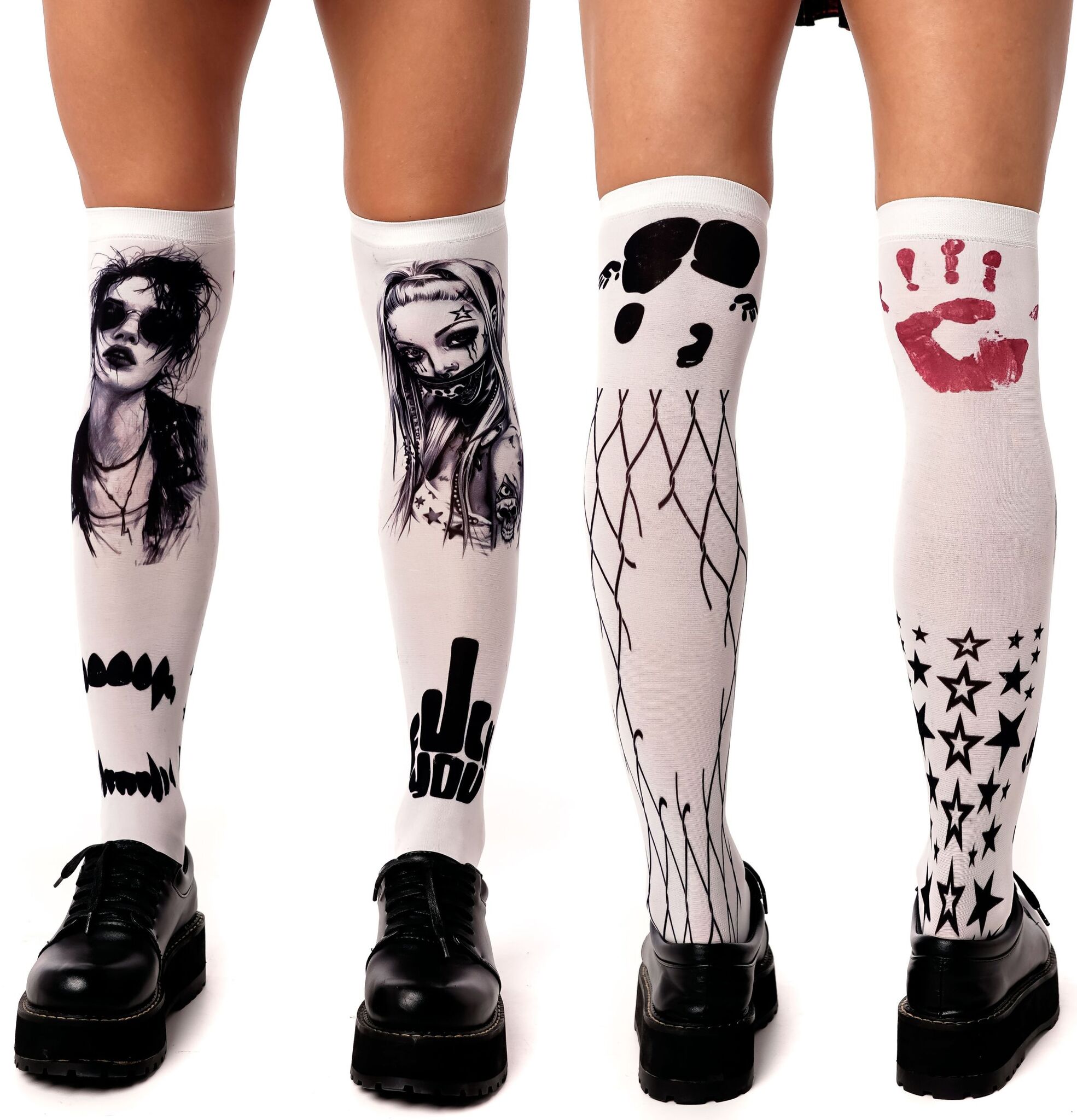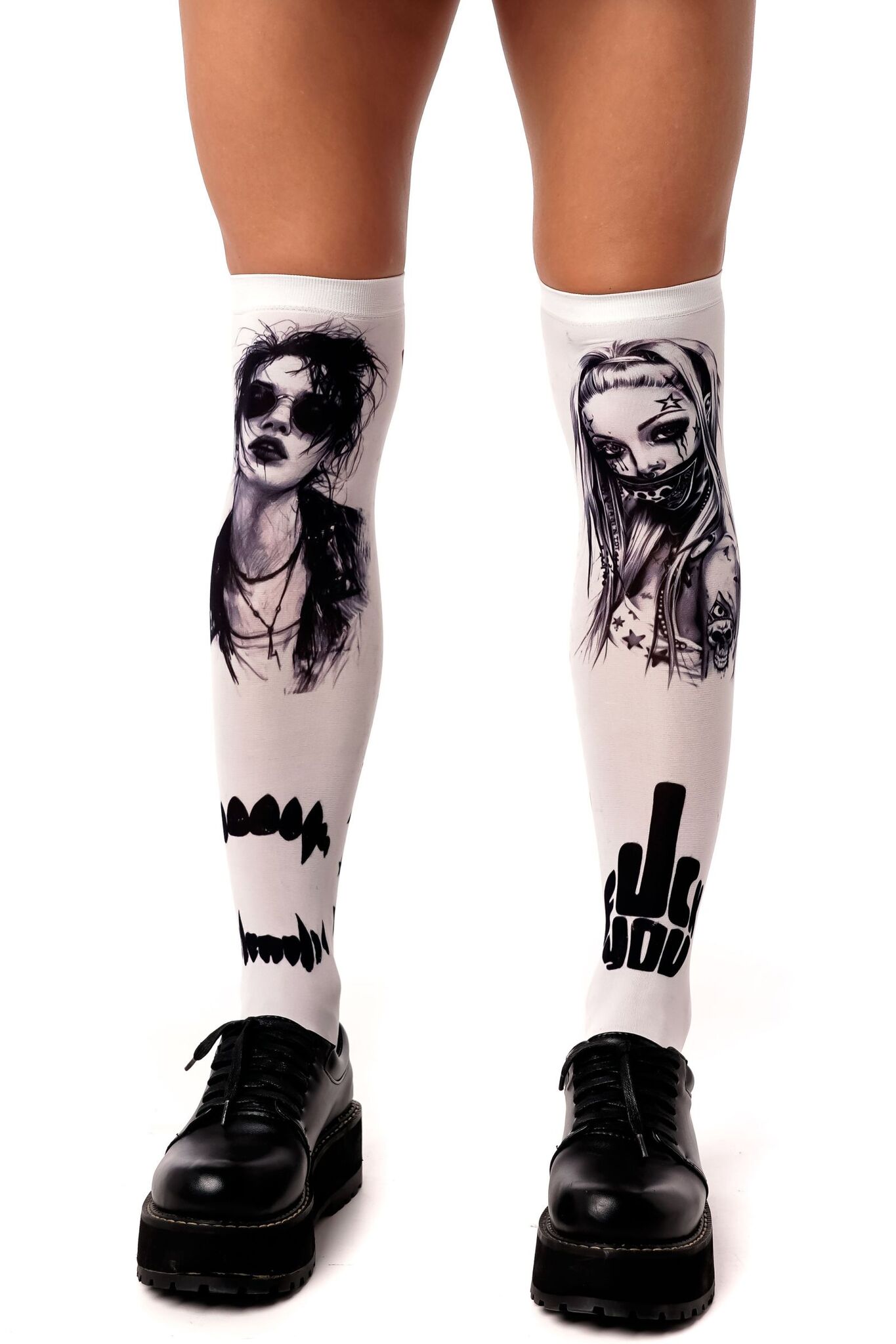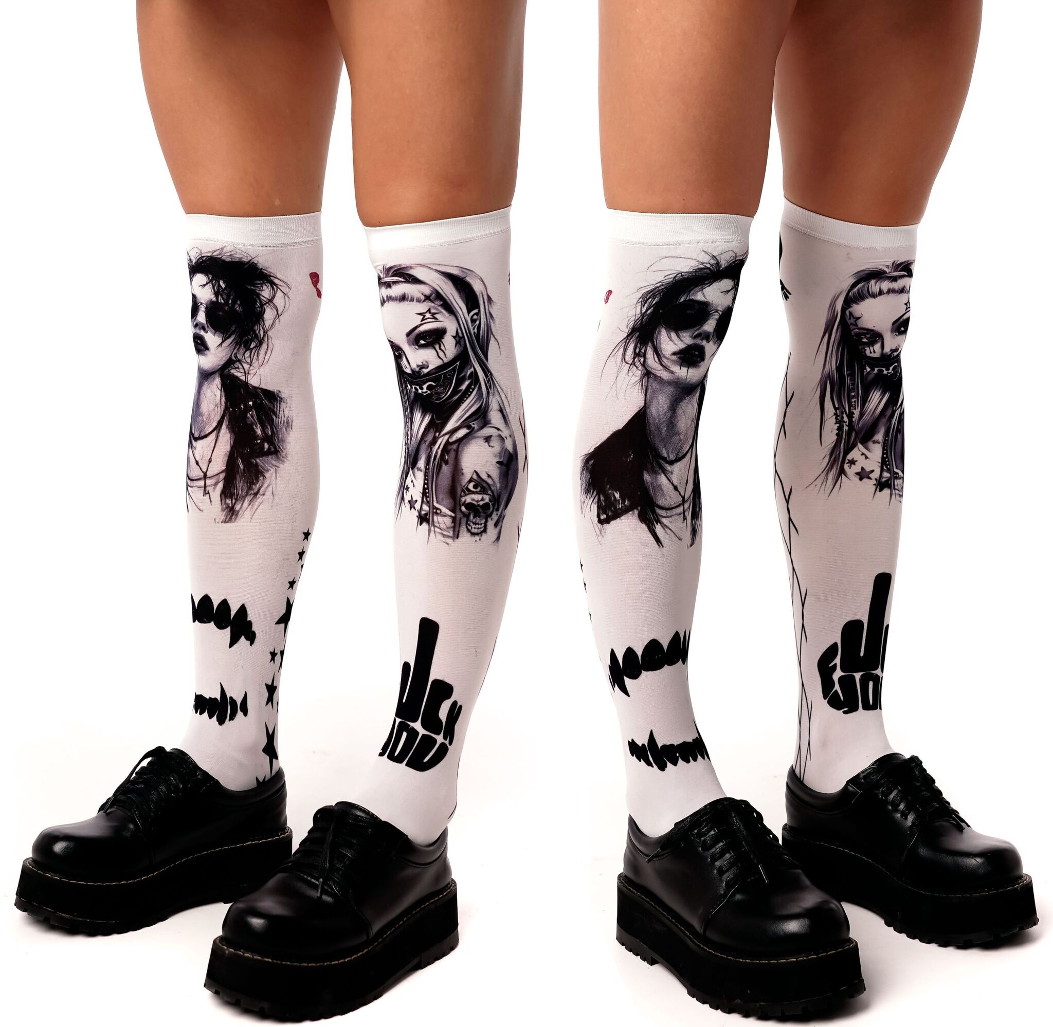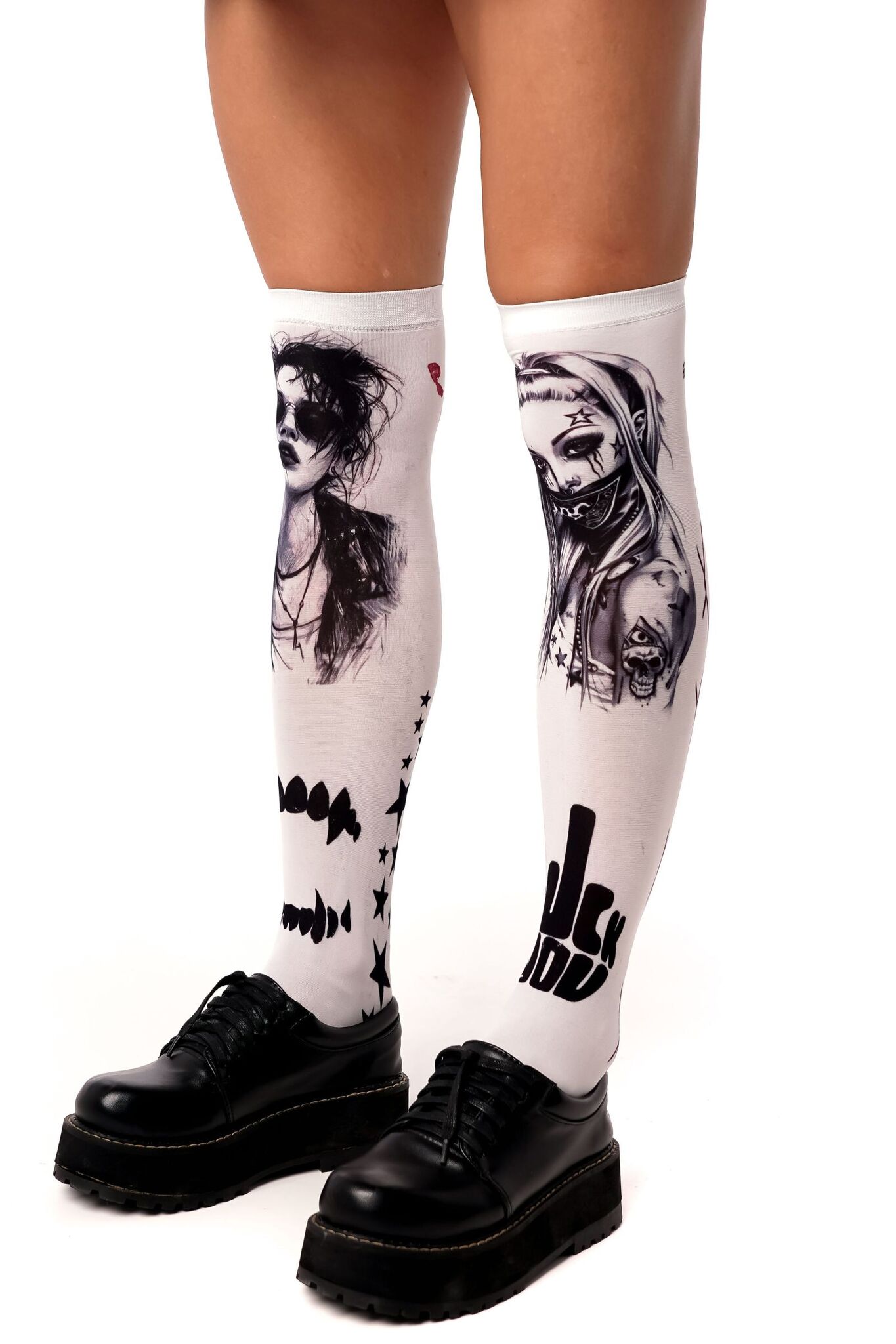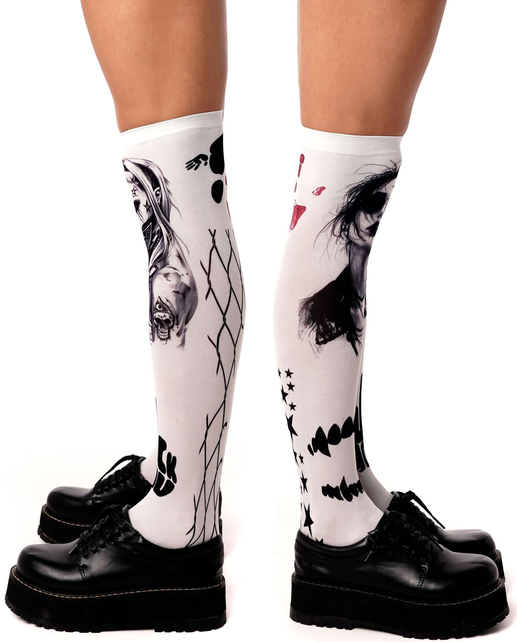 Эти белые гольфы с уникальными принтами-тату добавят яркости и индивидуальности вашему образу. Они идеально подходят для создания стильных нарядов, подчеркивающих вашу индивидуальность и вкус. Благодаря высококачественному материалу, состоящему из капрона и хлопка, гольфы обеспечивают комфорт и долговечность, что делает их отличным выбором для повседневной носки.