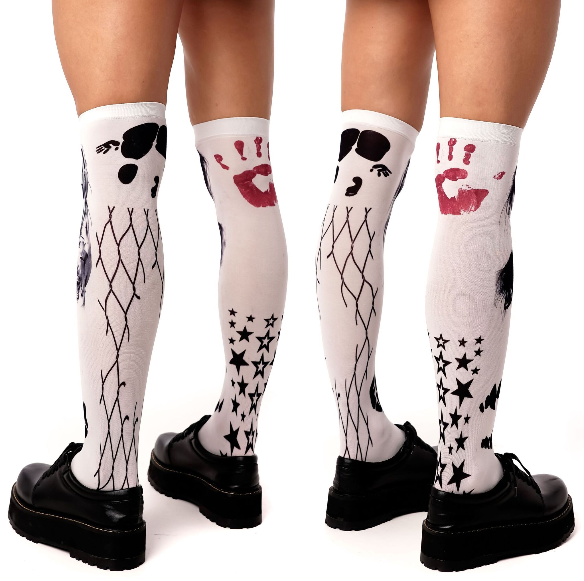 Гольфы выполнены в белом цвете и украшены графическими изображениями, которые делают их уникальными. Размеры универсальны, что позволяет носить их с различной обувью. Эти гольфы — отличный выбор для тех, кто ценит стиль и комфорт в одном флаконе.
