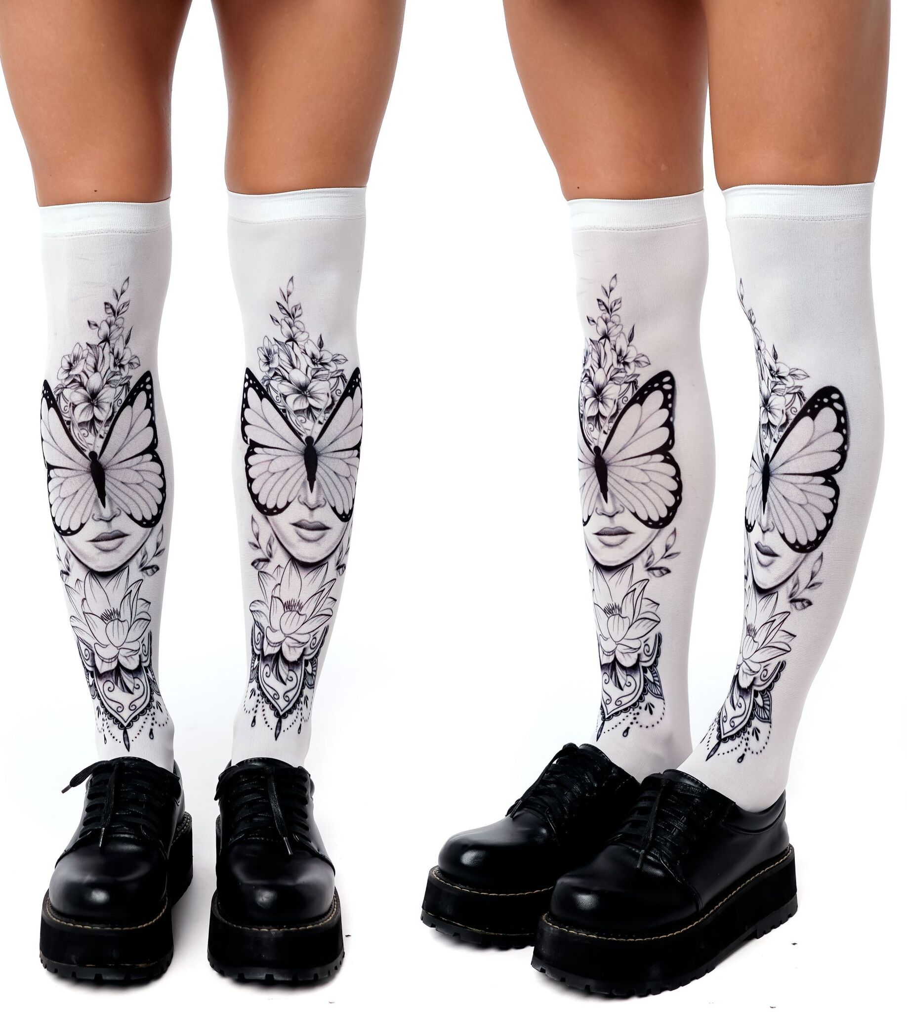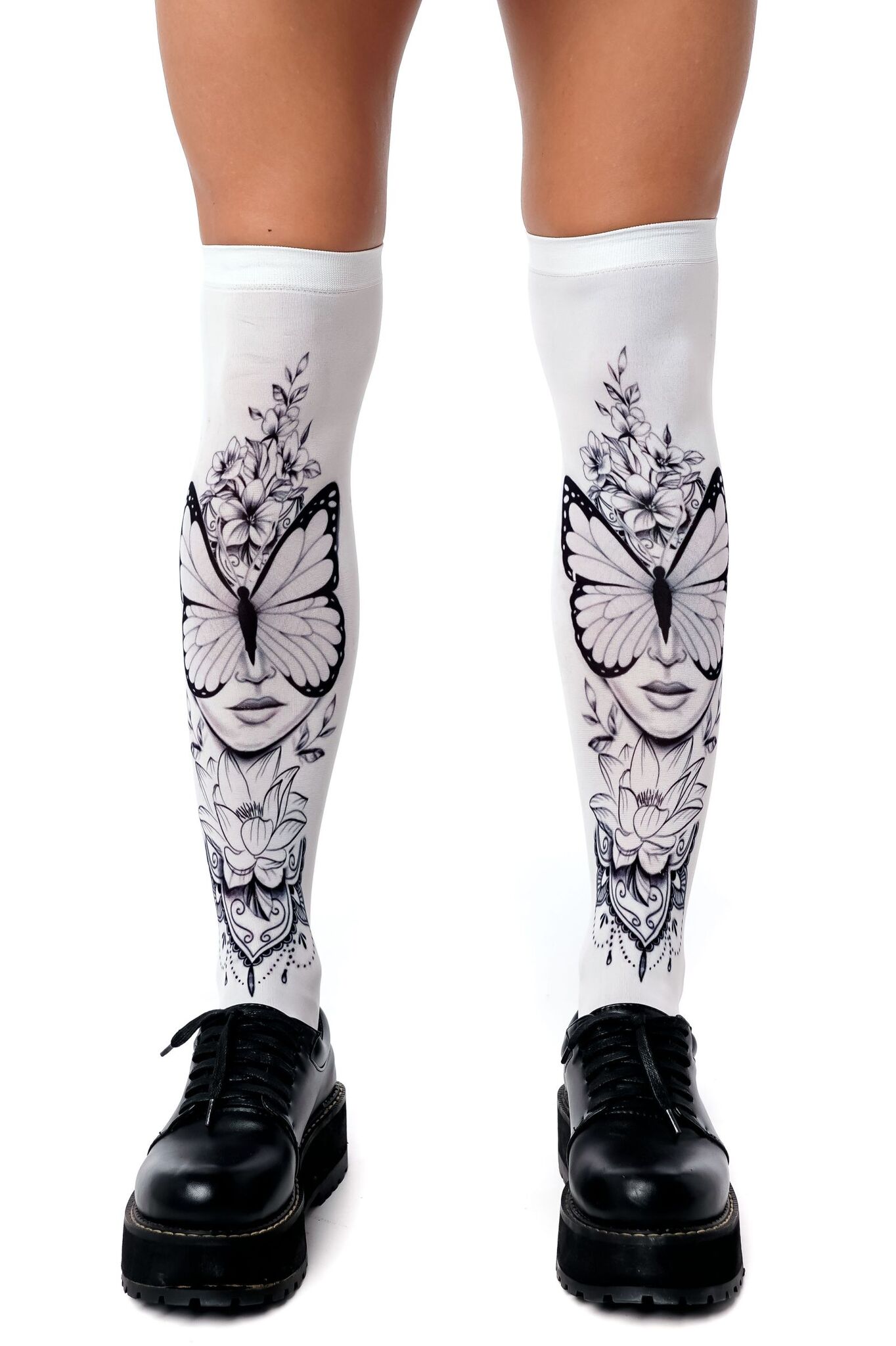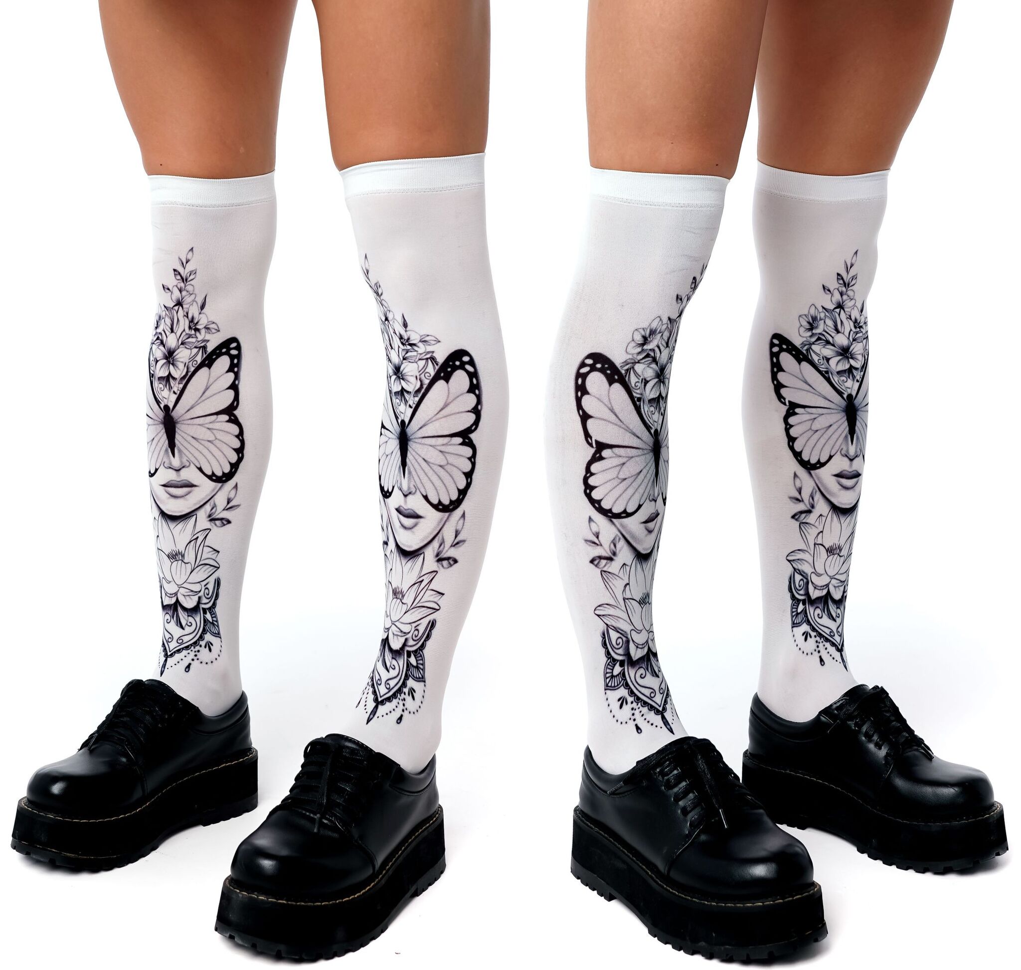 Создайте неповторимый стиль с белыми гольфами, украшенными изящным принтом в виде бабочки и цветочных элементов. Эти гольфы станут идеальным завершением вашего образа, добавляя нотку игривости и элегантности.