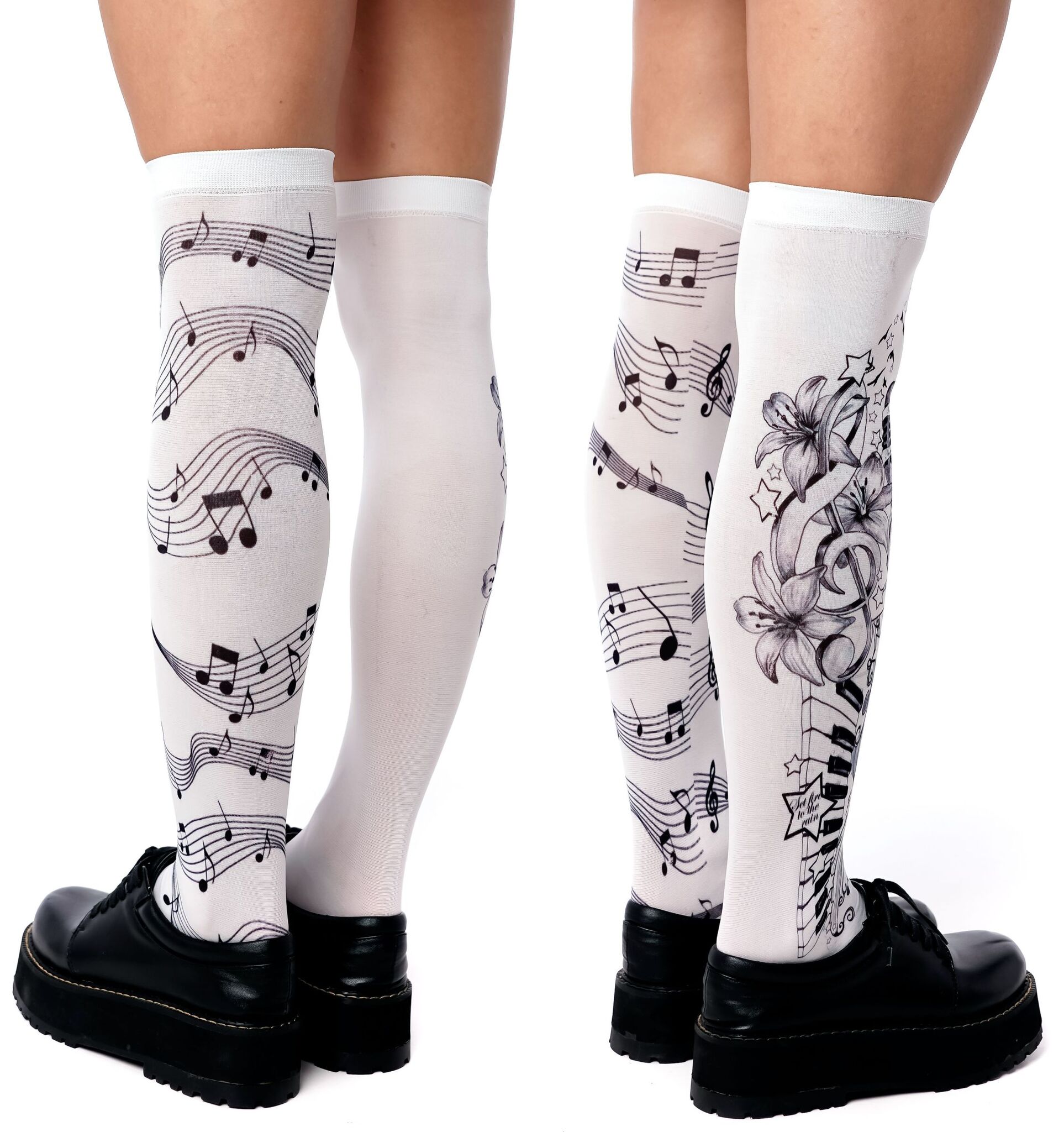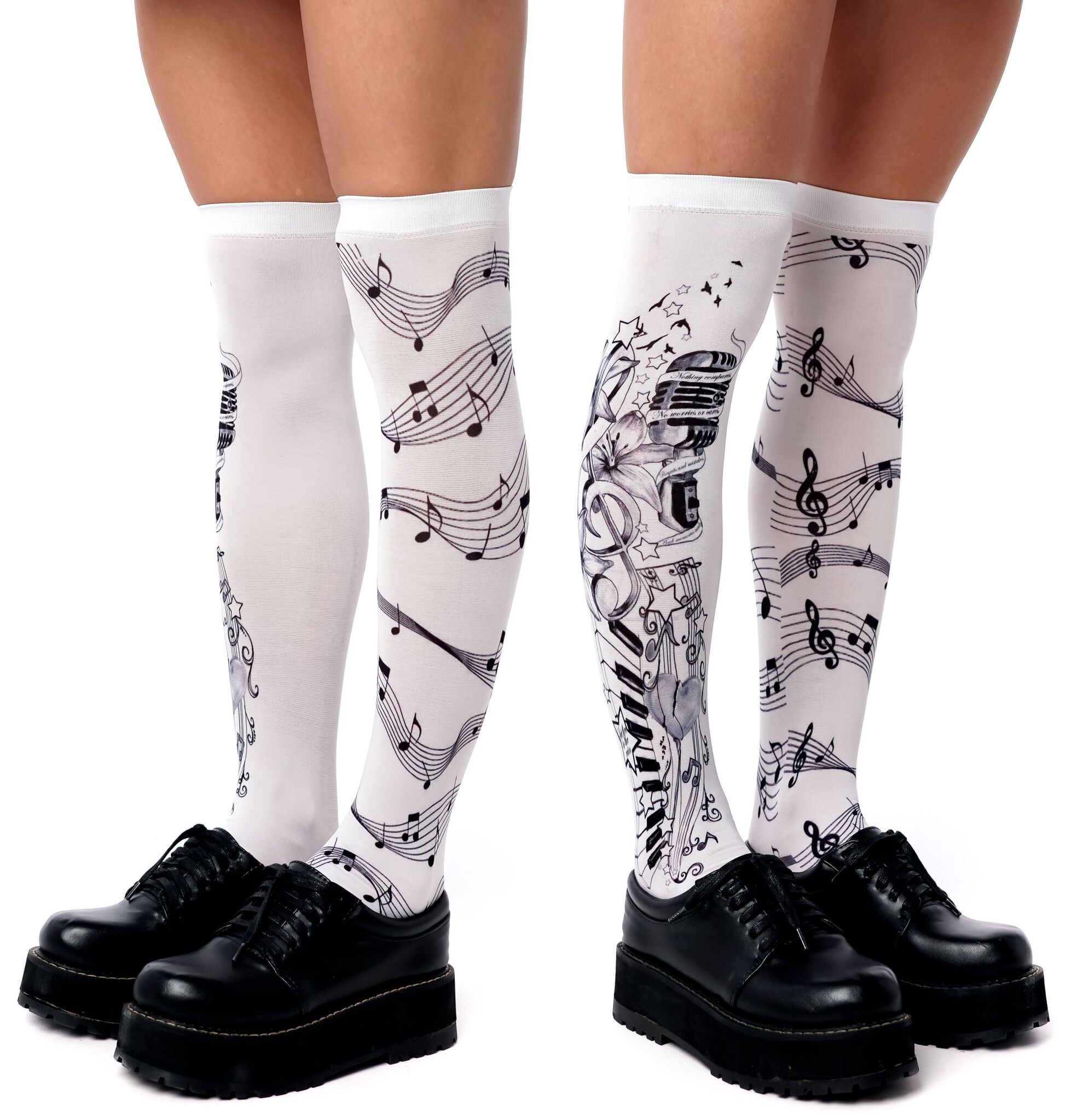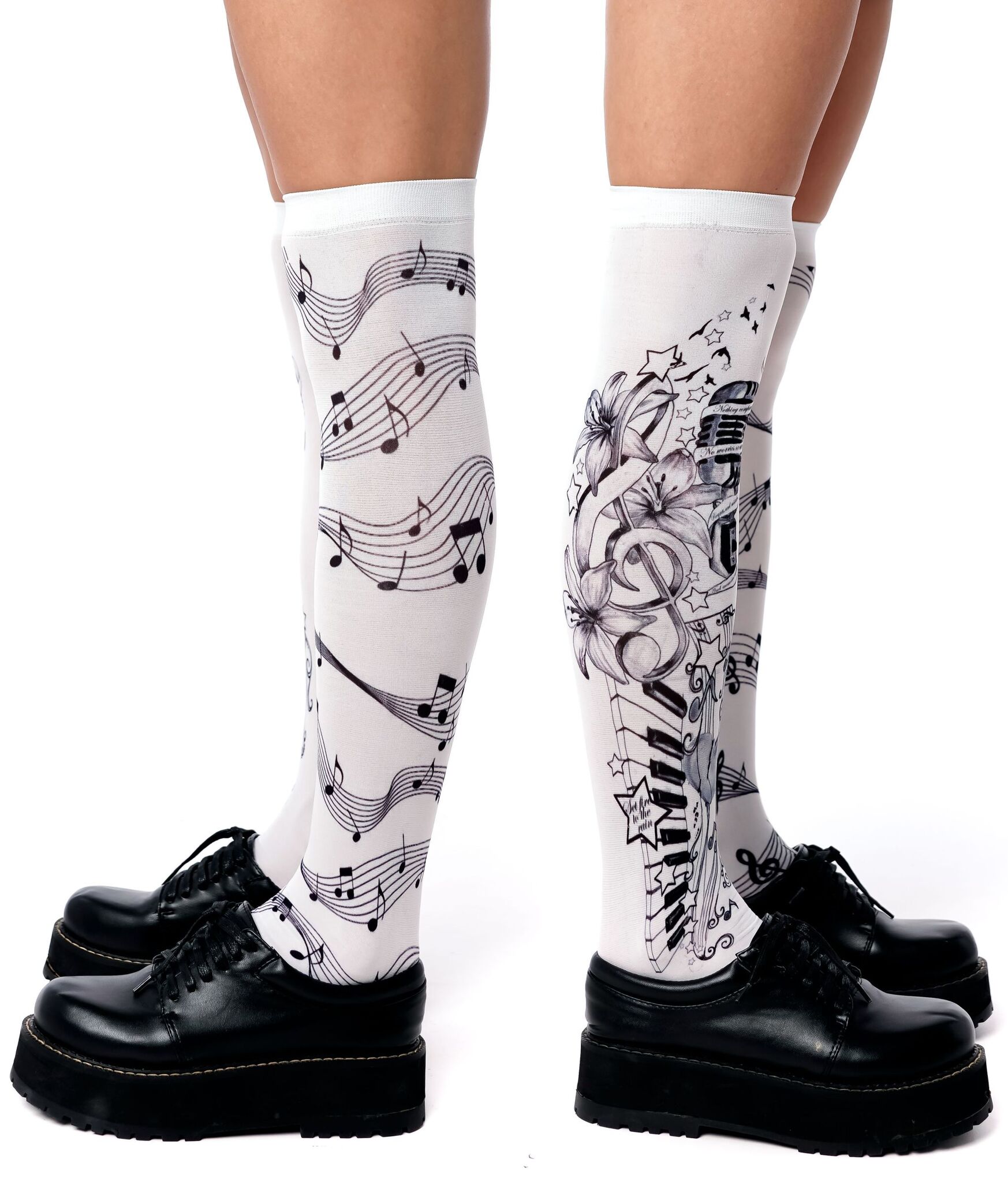 Стильные белые гольфы с музыкальным принтом