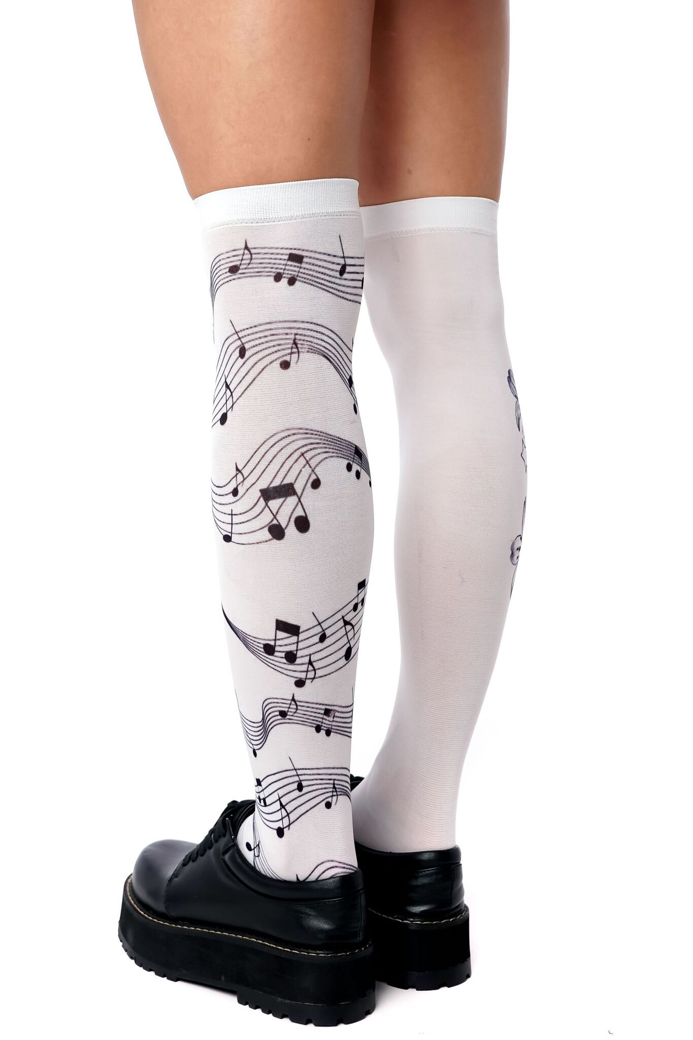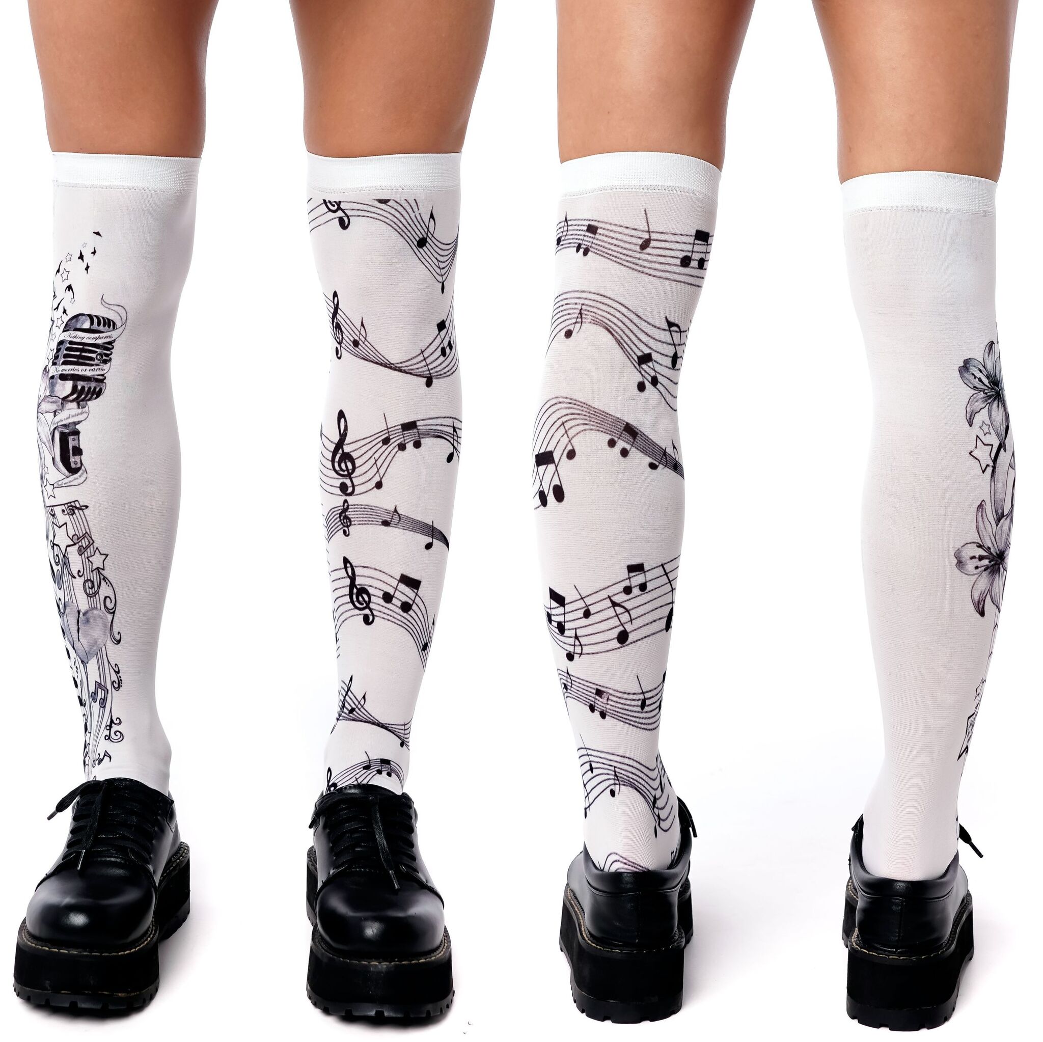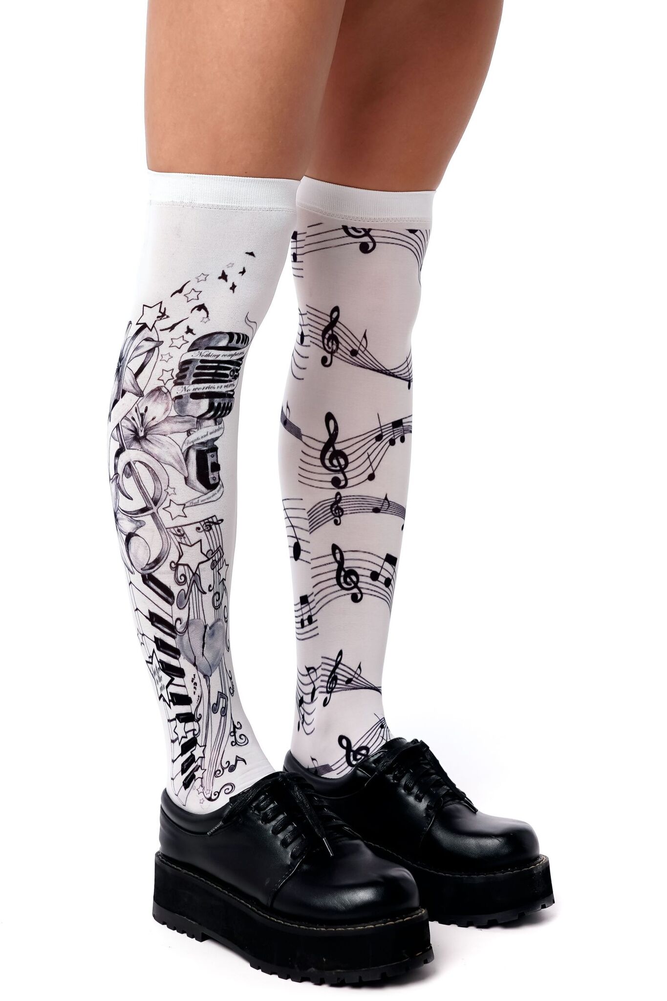 Стильные белые гольфы с музыкальным принтом