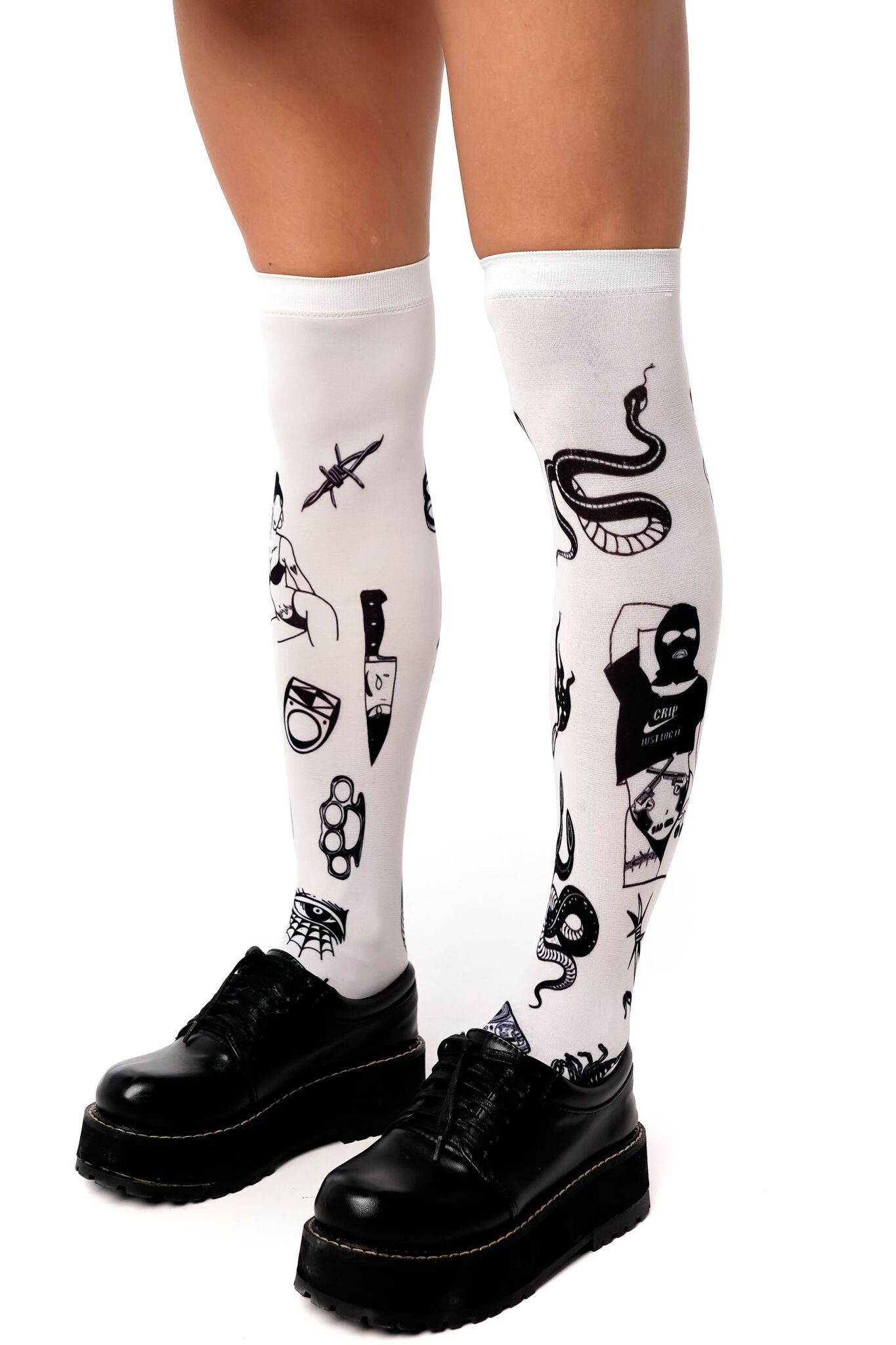 Гольфы женские с тату-принтом «Street Style», до колен, капрон/хлопок, белые