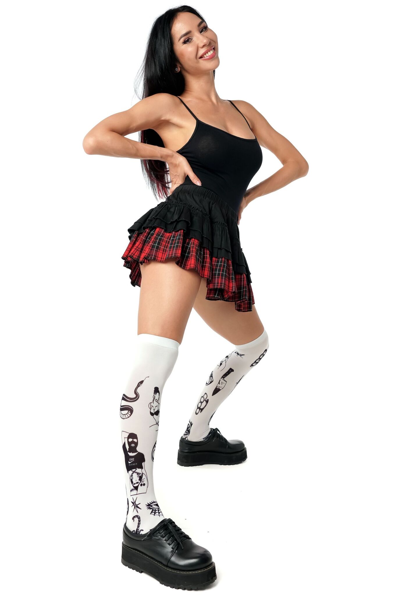 Обновите гардероб эффектным аксессуаром, который подчеркнет вашу индивидуальность и завершит любой дерзкий образ. Гольфы с тату-принтом — выбор для тех, кто не боится выделяться.