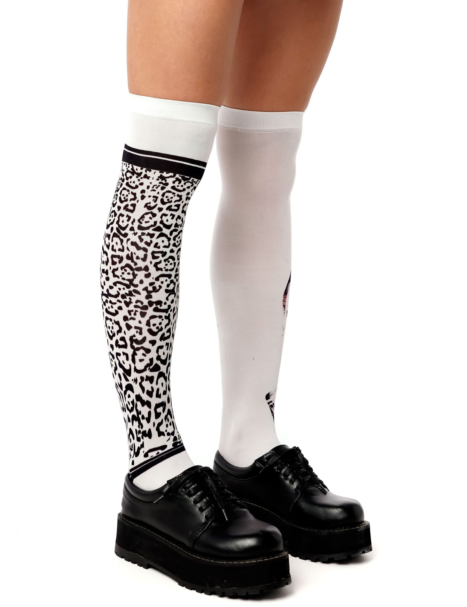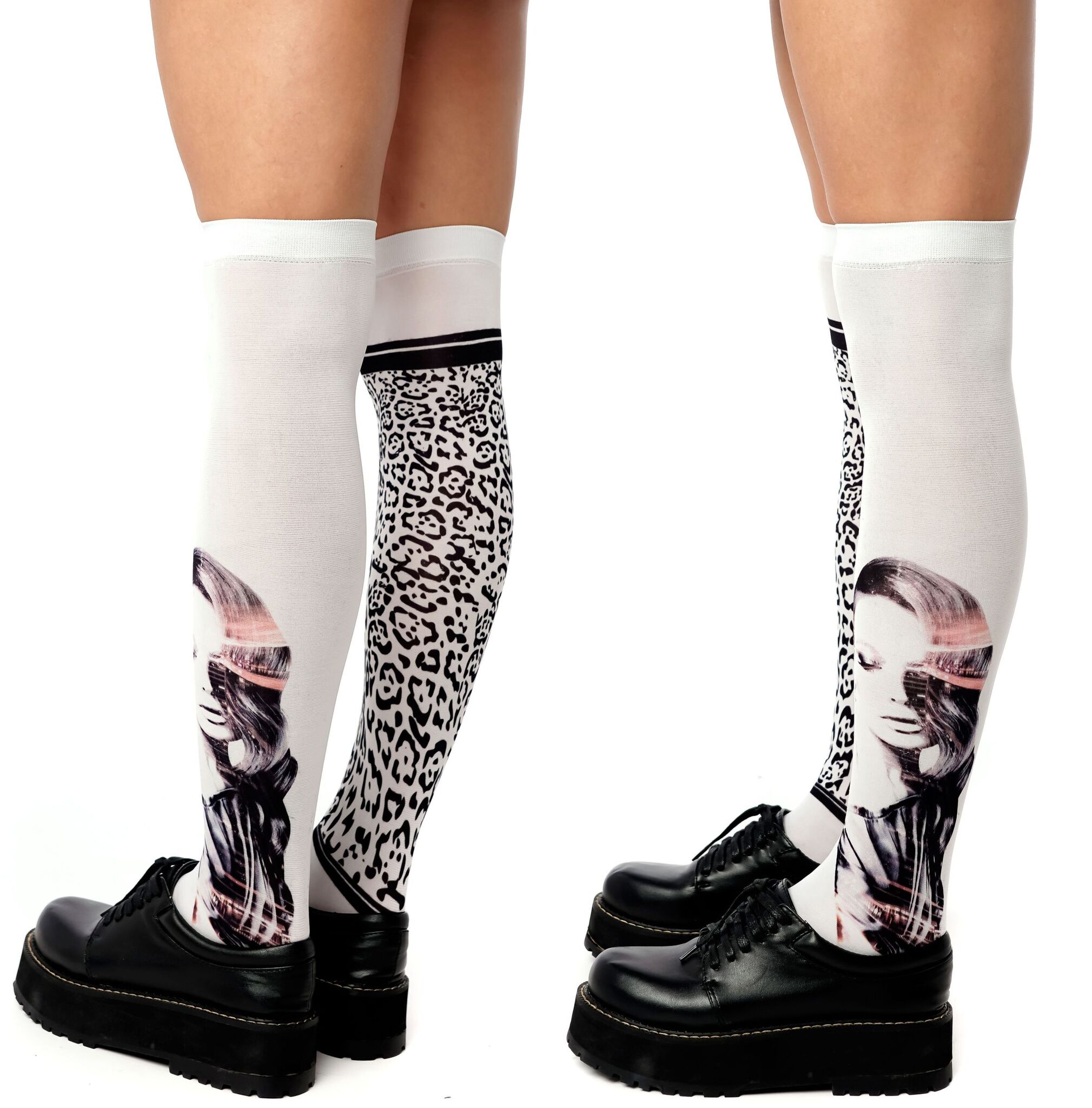 Гольфы белые с принтом "Леопард/Портрет", капрон/хлопок, р-р универсальный