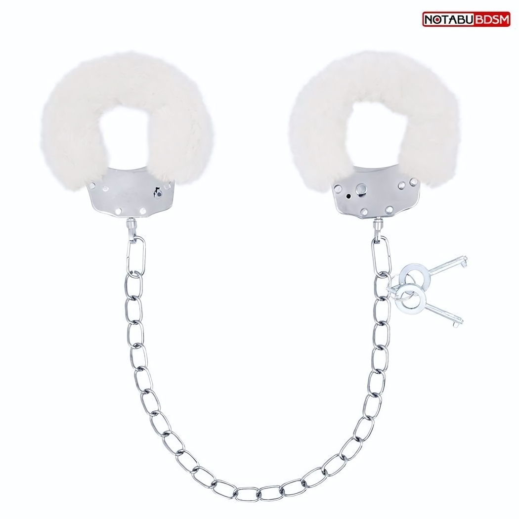 Оковы меховые "Ankles cuffs" с цепочкой и ключами, белые, металл/мех