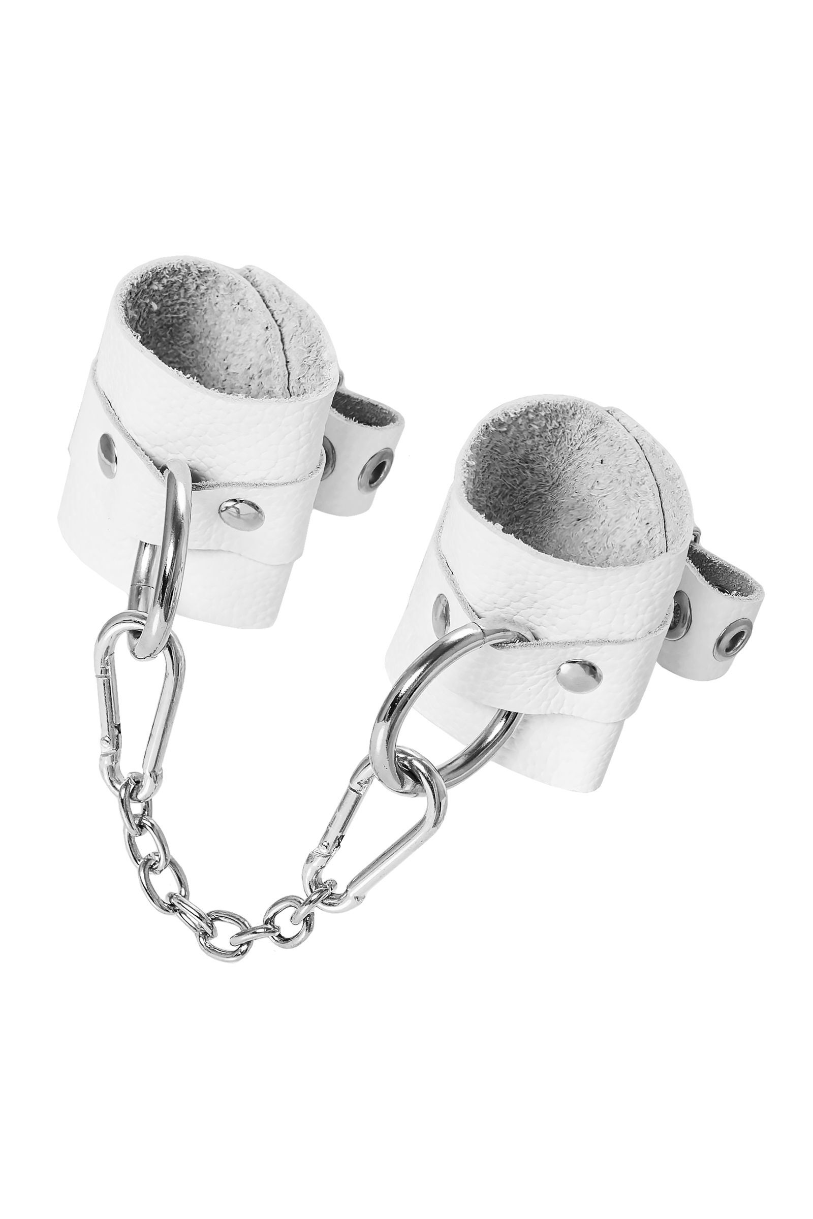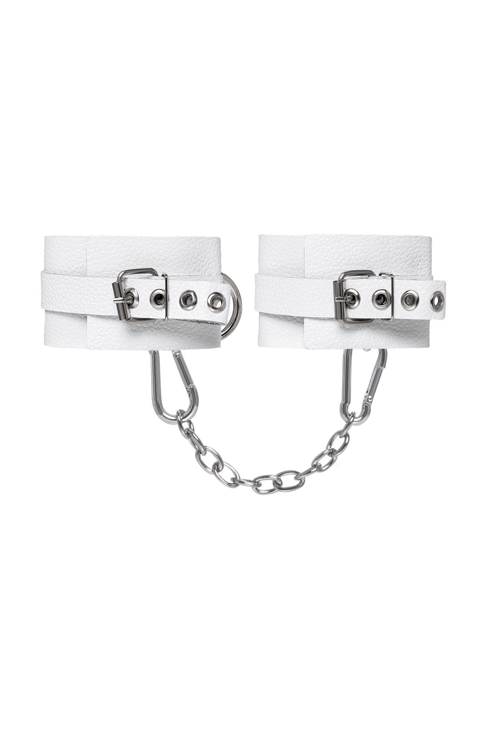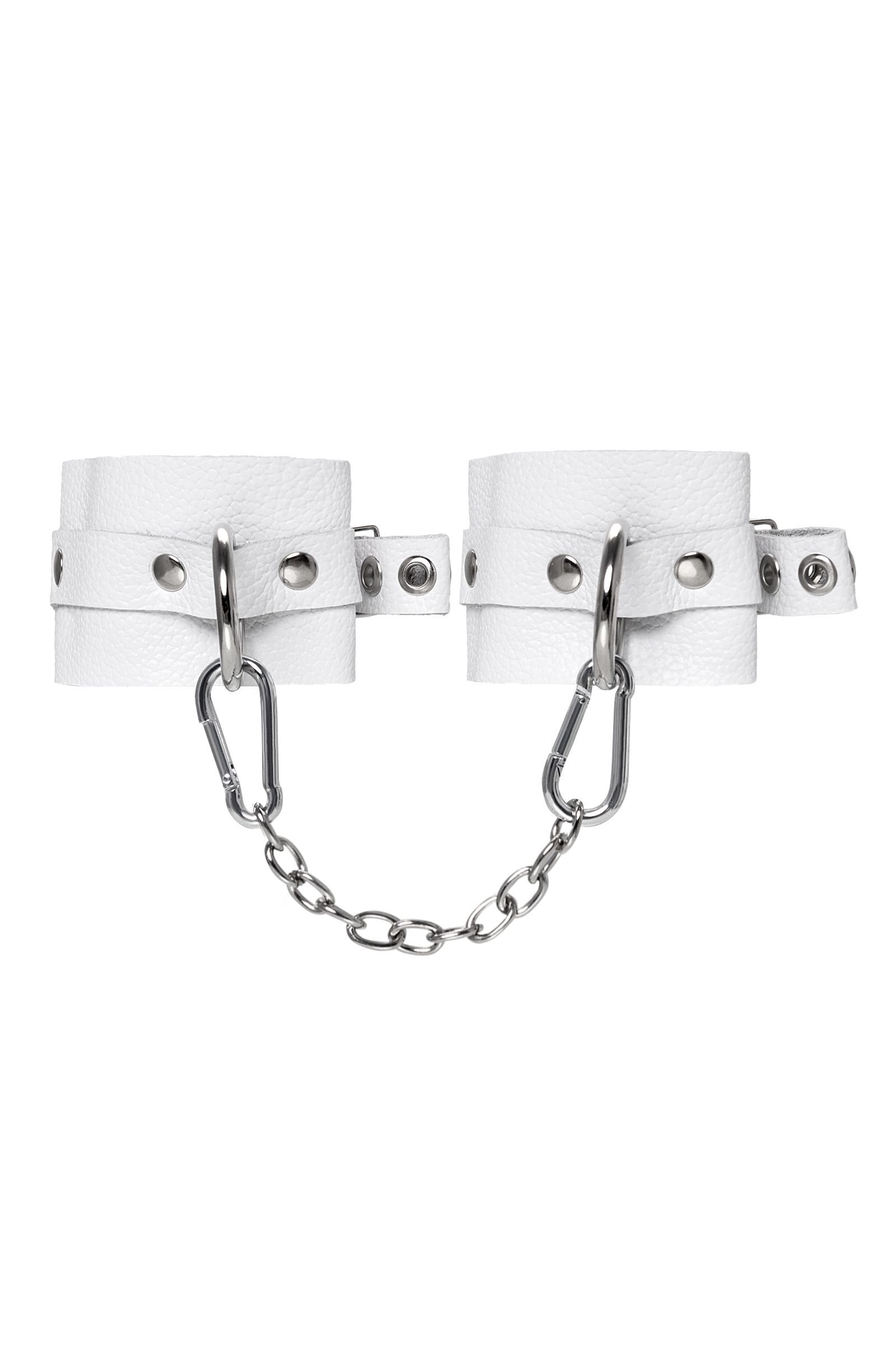 Практические детали: Длина манжет — 18 см, ширина — 5,5 см, длина цепочки — 20 см. Цвет — белый. Материал — натуральная кожа и металл. Изготовлено в России. Упаковка и инструкция не входят.