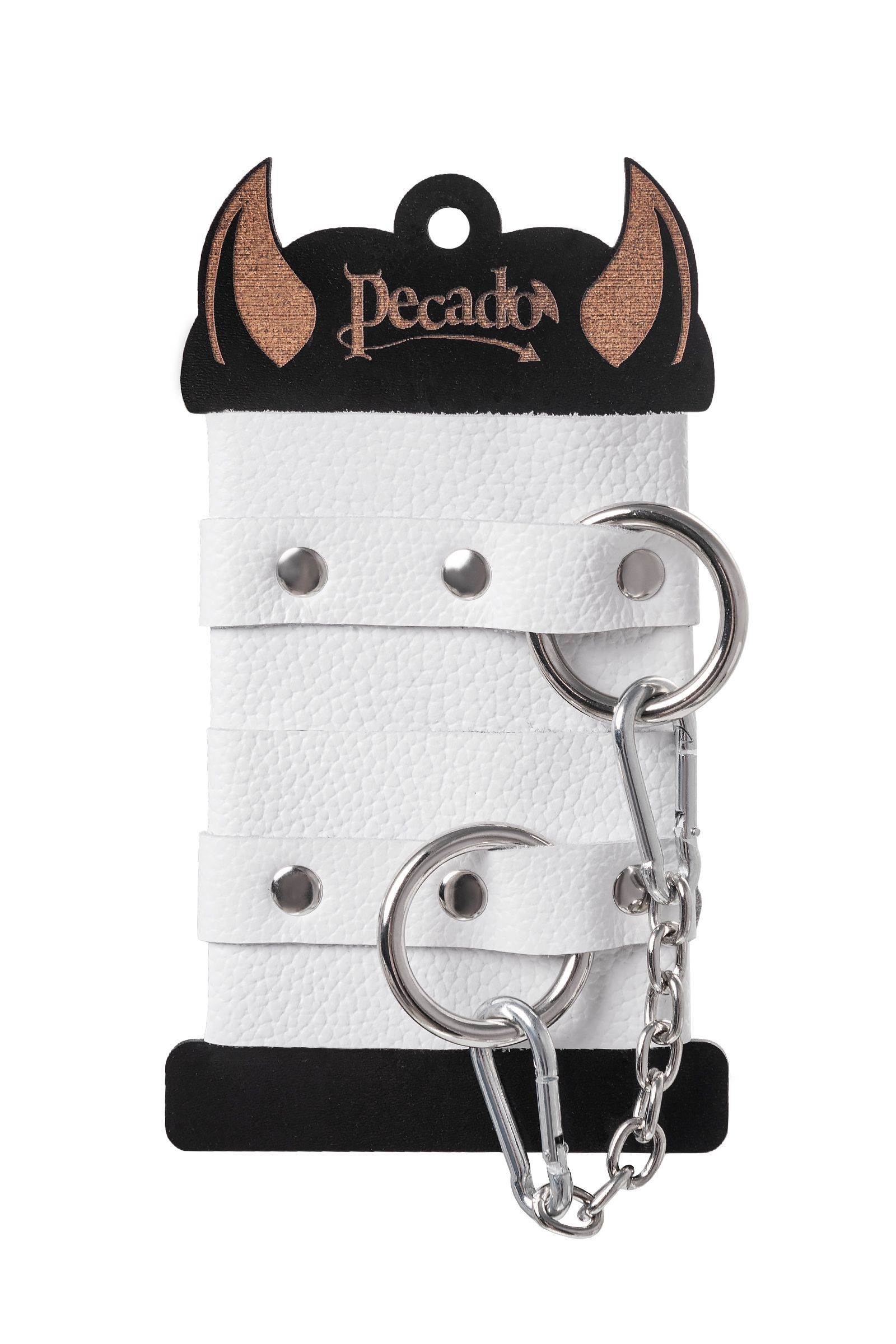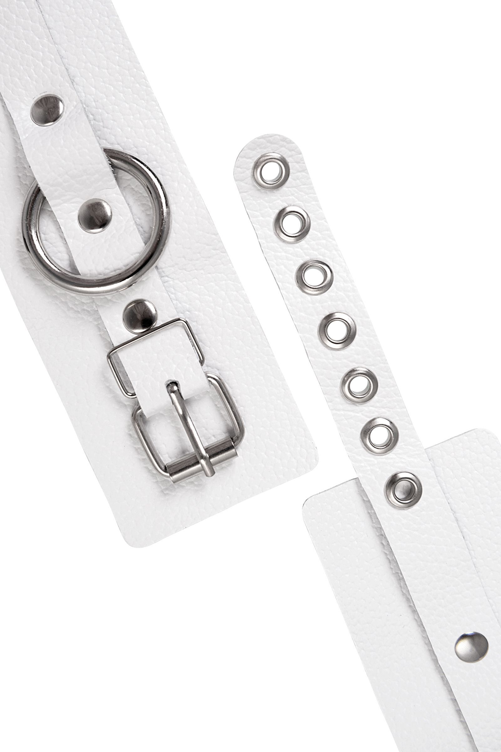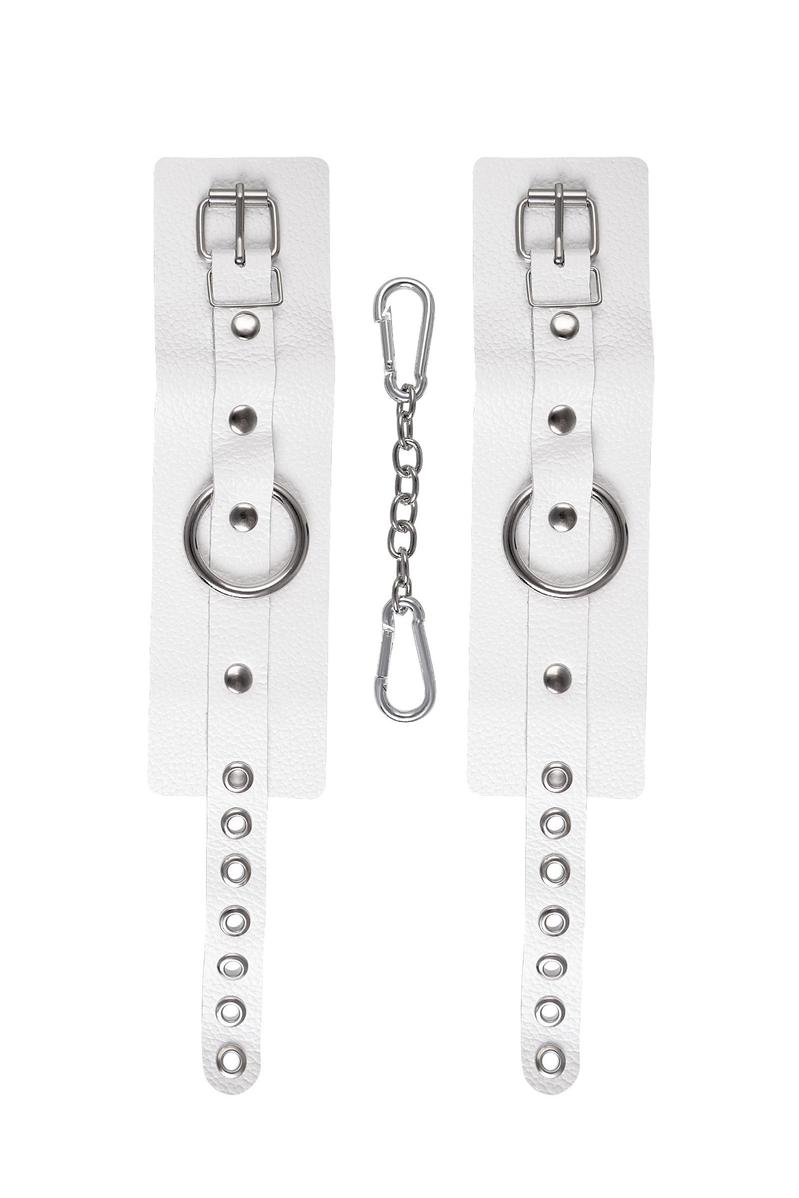 Практические детали: Длина манжет — 18 см, ширина — 5,5 см, длина цепочки — 20 см. Цвет — белый. Материал — натуральная кожа и металл. Изготовлено в России. Упаковка и инструкция не входят.