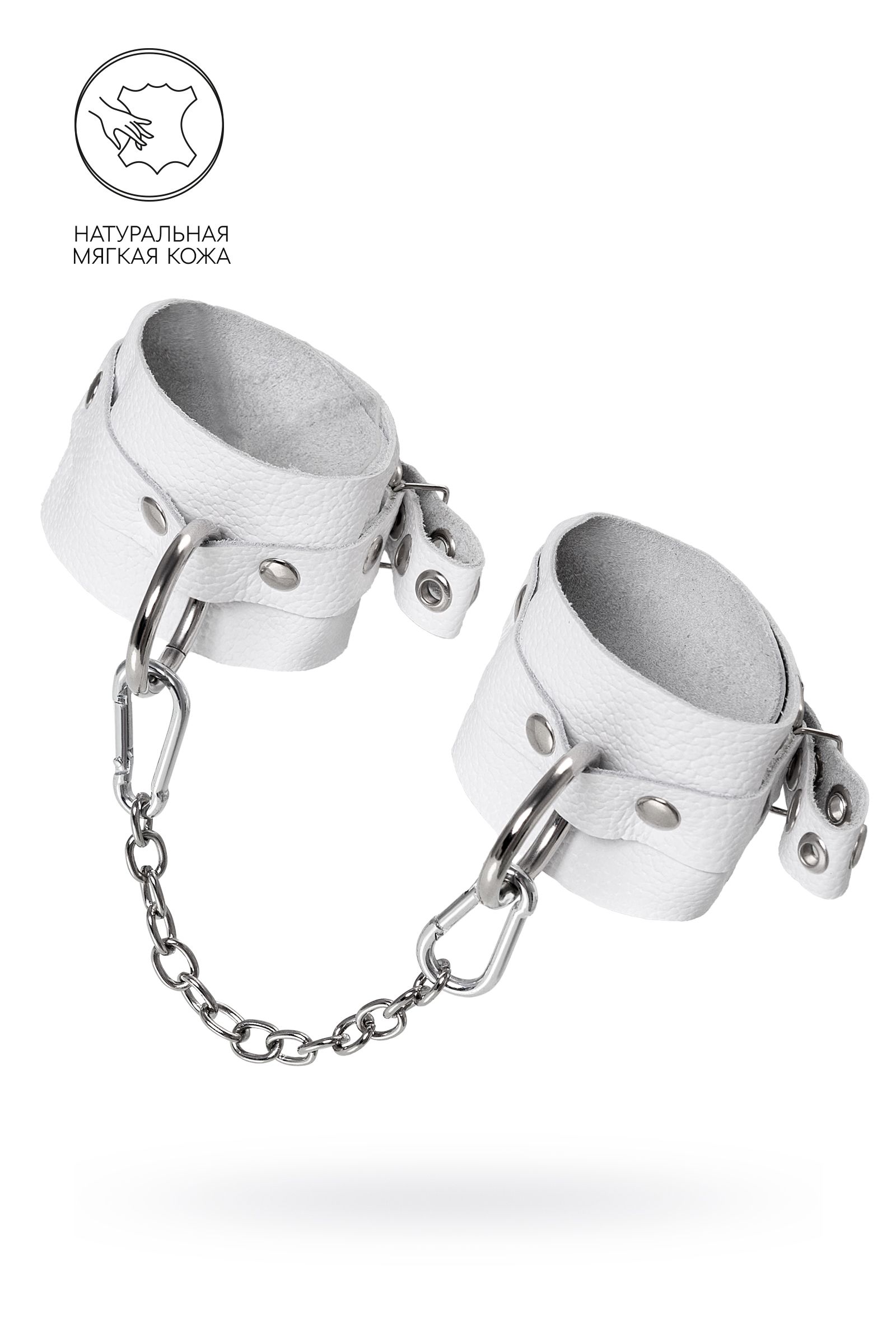 Наручники кожаные "Pecado" белые, мягкие, с люверсами, длина 25см