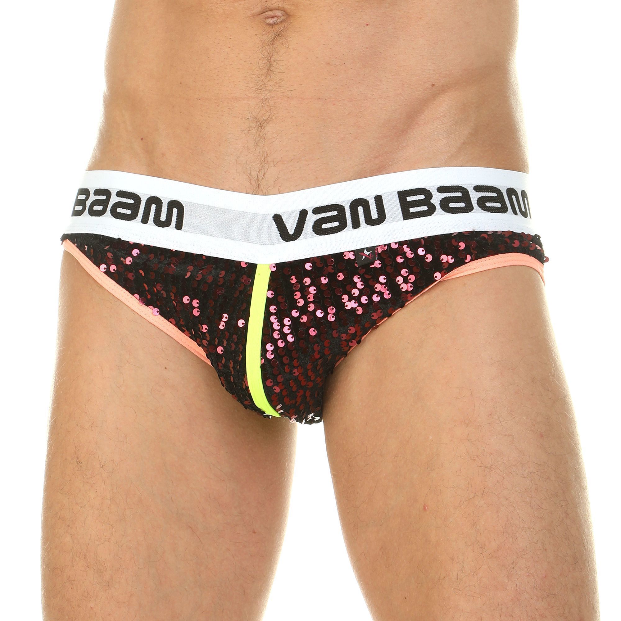 Трусы-слипы мужские эротичные с пайетками, белый/красный, хлопок 95%, размер M, VAN BAAM