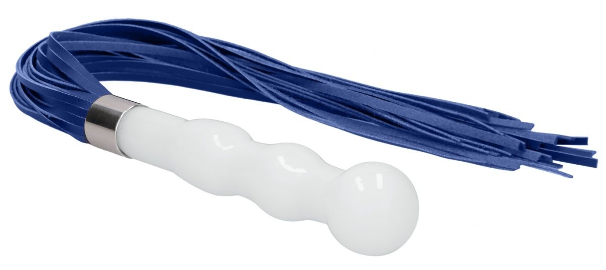 - Плеть из искусственной кожи с множеством синих гибких хвостов для легких касаний и тактильной игры