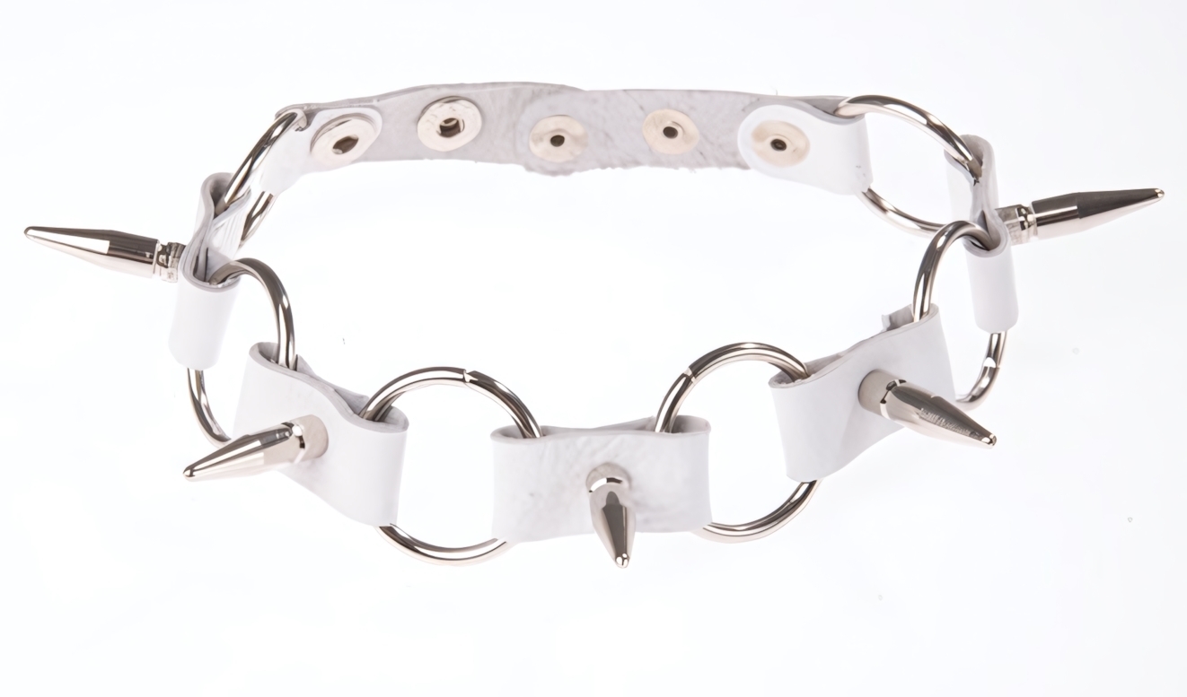 Ошейник кожаный белый с шипами 2см, 'Sitabella', bdsm-атрибутика