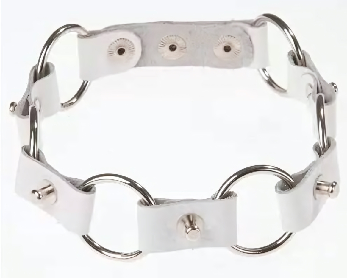 Ошейник bdsm из натуральной кожи, белый, ширина 2 см, с никелированными кольцами