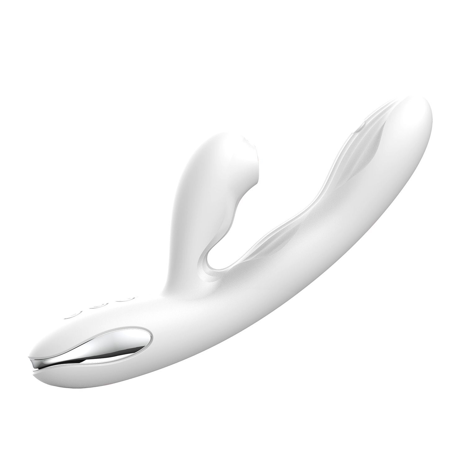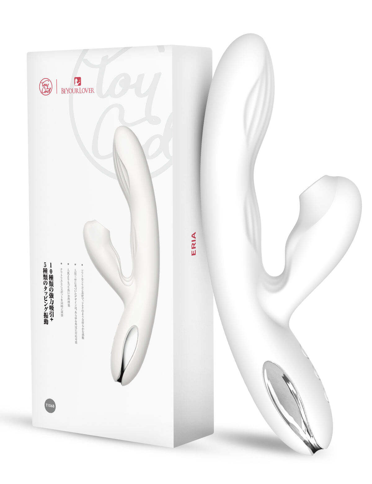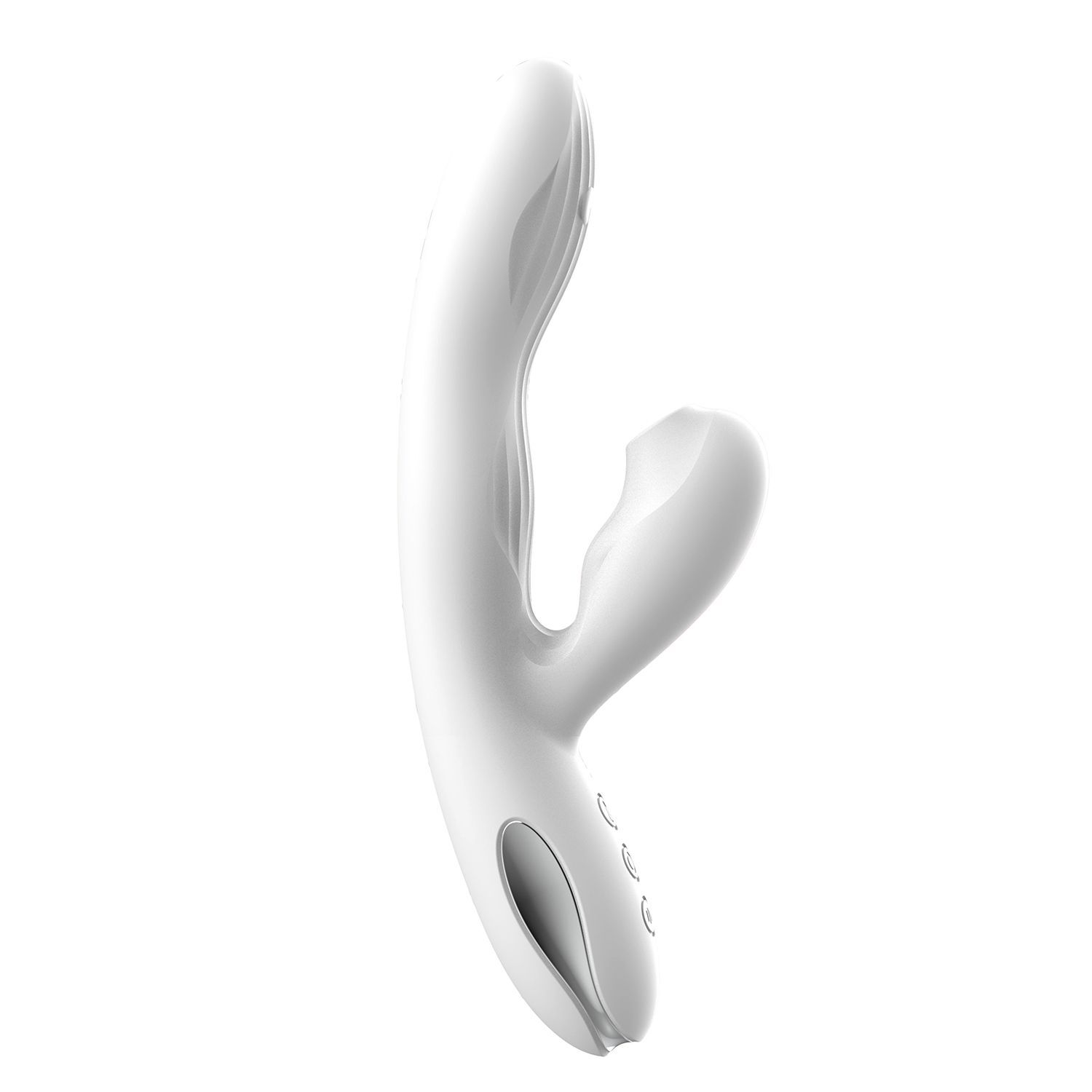 Вибратор-кролик «Eria» для двойной стимуляции, вакуумный, с нагревом до 43°C и функцией tapping, силикон, 21,5 см, белый