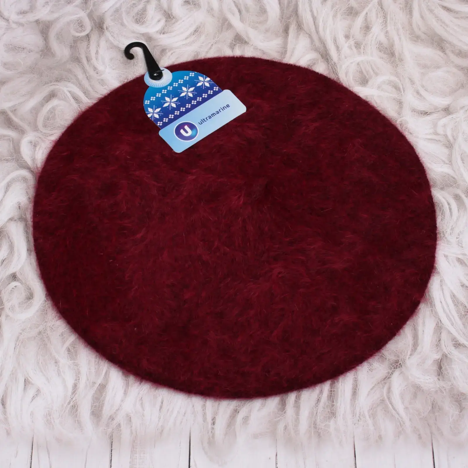Берет женский из ангоры "Mon Caprice", бордовый, р.58, шерсть кролика