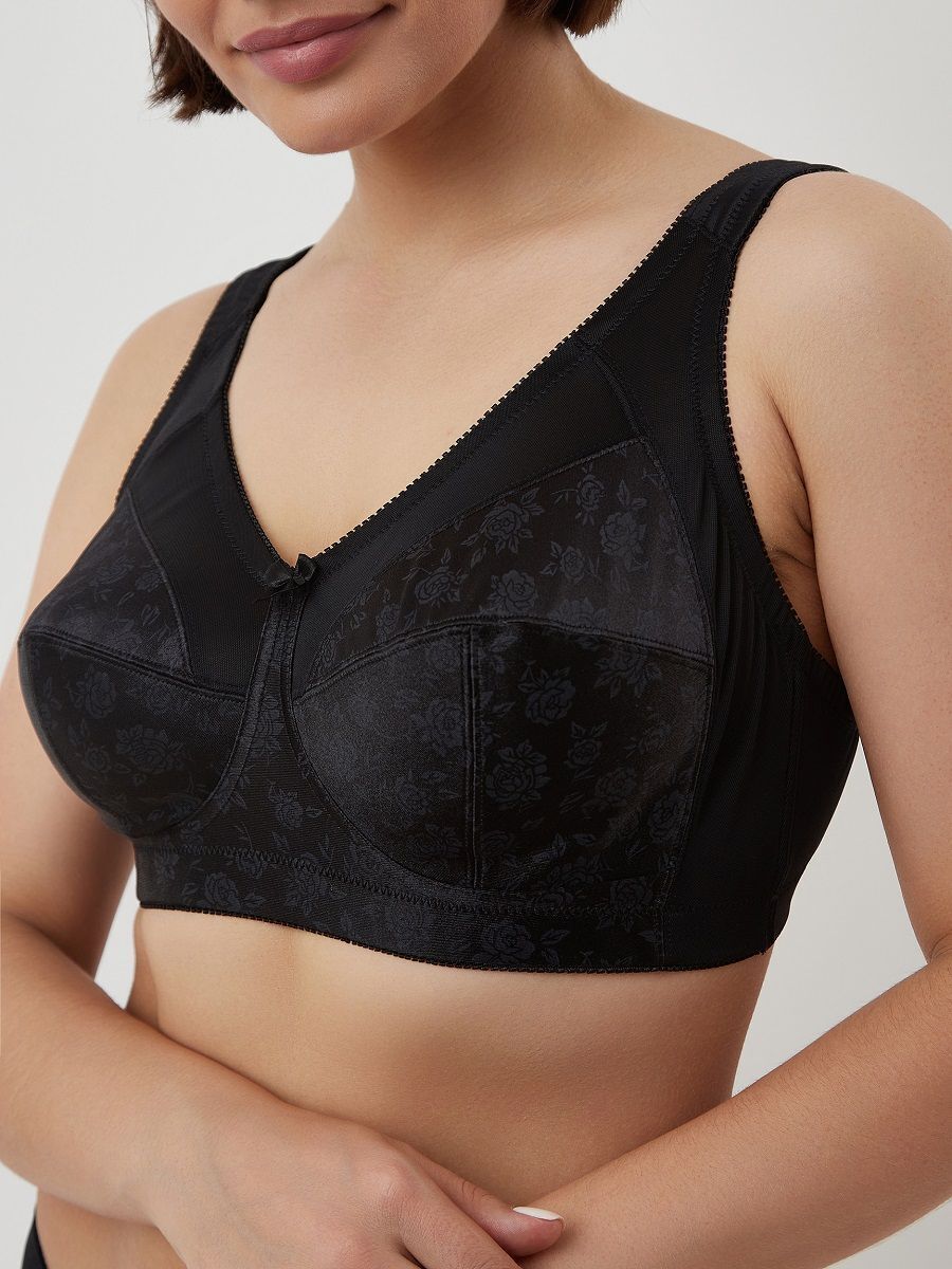 Этот бюстгальтер идеально подходит для женщин с размером 36DDD. Он полностью закрывает грудь, обеспечивая отличную посадку и поддержку. Т-образная чашка помогает создать красивый силуэт, а широкие бретели с дополнительным кроем на плече предотвращают натирание и дискомфорт. Застежка на четыре крючка в три ряда позволяет легко регулировать размер и обеспечивать надежную фиксацию.