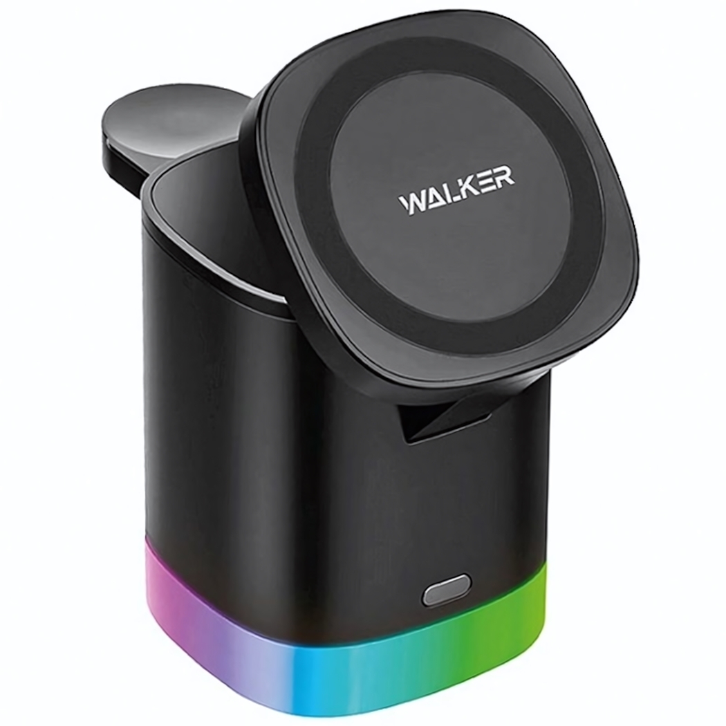Освободите своё пространство от проводов и быстрее возвращайтесь к делам — это беспроводное зарядное устройство «WH-55» поддерживает технологию быстрой зарядки Qi до 18 Вт, позволяя заряжать сразу три совместимых гаджета одновременно. Забудьте о путанице кабелей и разряженных аккумуляторах: каждый ваш девайс будет всегда готов к работе, отдыхая на стильной платформе с плавной градиентной подсветкой.