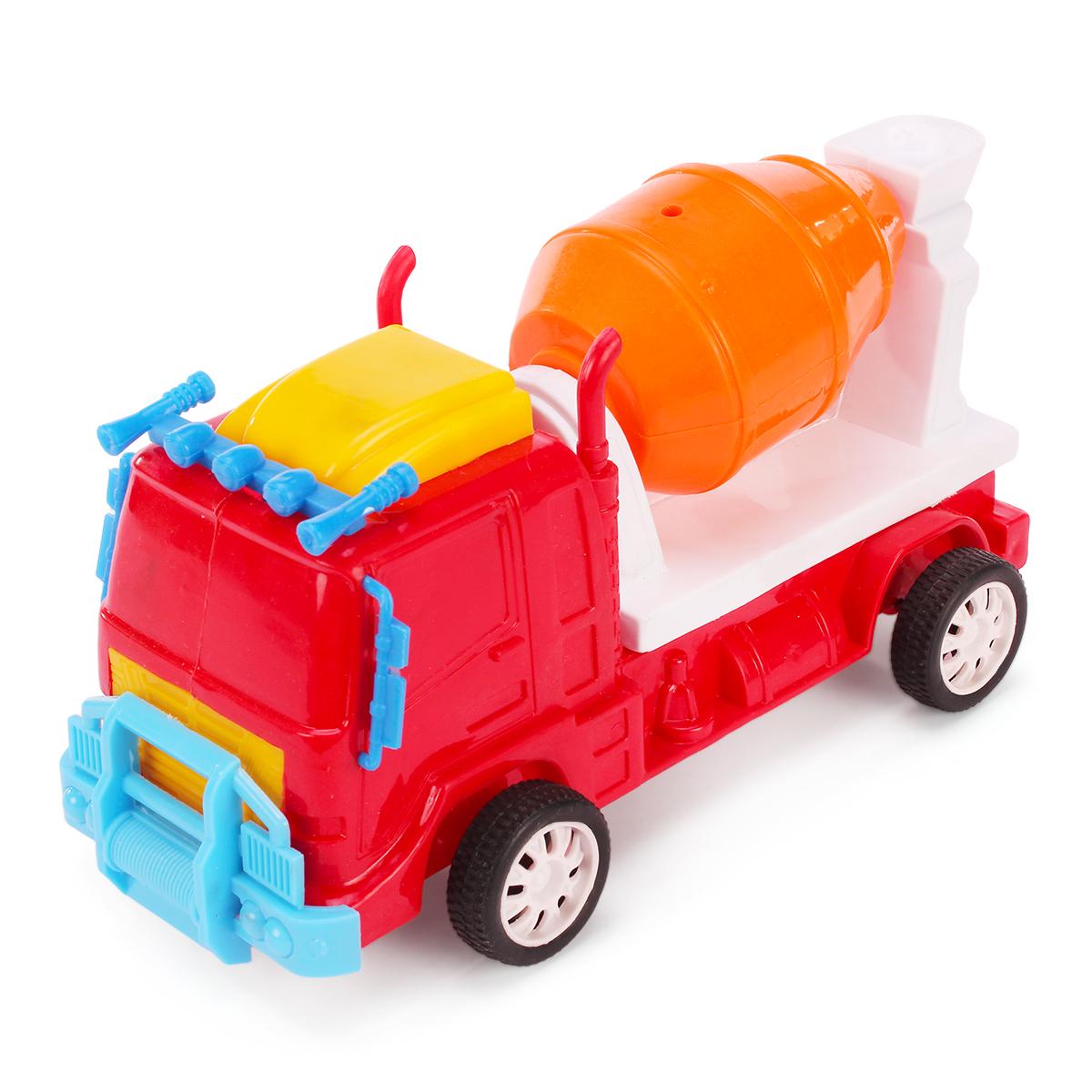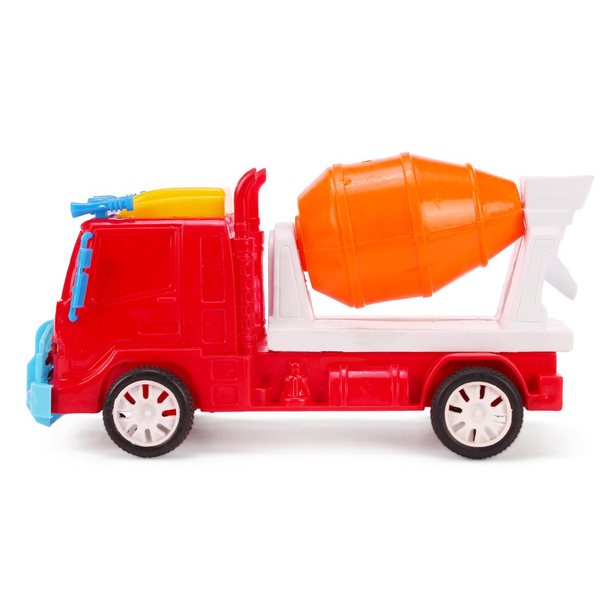 Благодаря продуманной конструкции, машинка легко катится по любой поверхности, а барабан свободно вращается, имитируя работу настоящей бетономешалки.