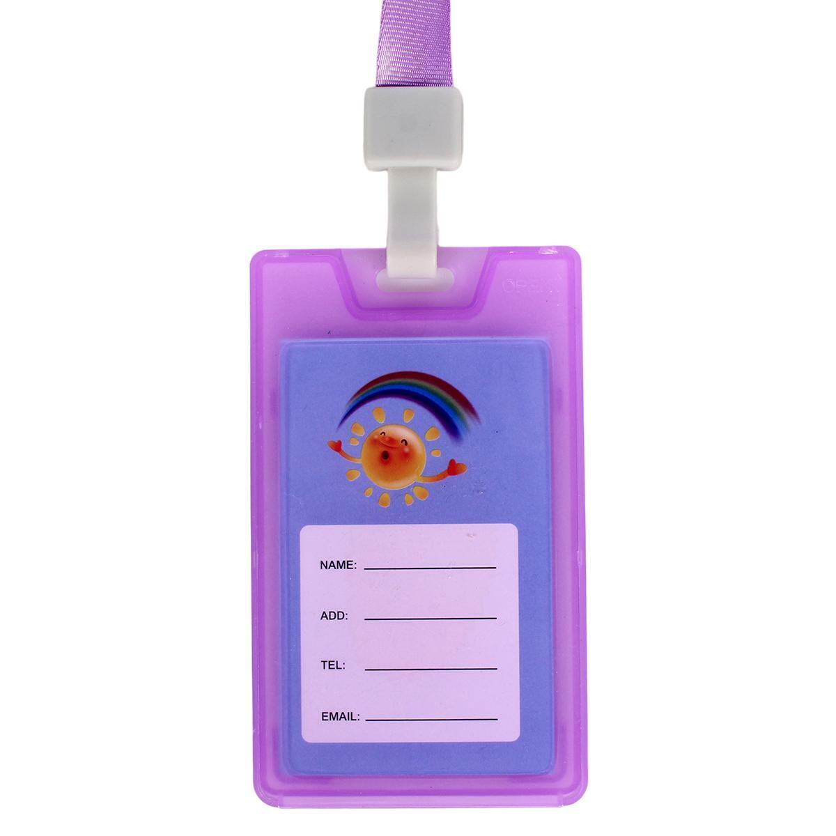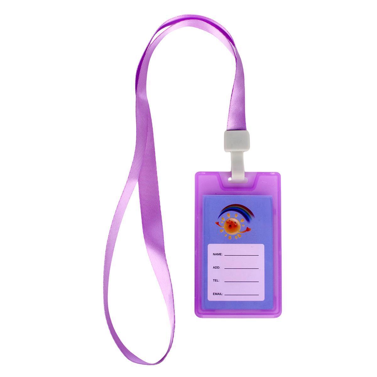 Бейдж пластиковый 'C-40151' со шнурком, фиолетовый/прозрачный, для карт 9х5см