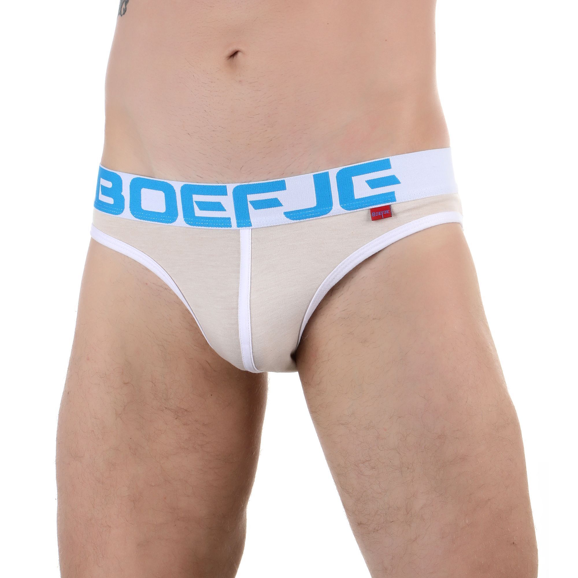 Мужские трусы-слипы бежевые, размер S, эластичный пояс, принт «BOEFJE», 95% полиэстер/5% эластан