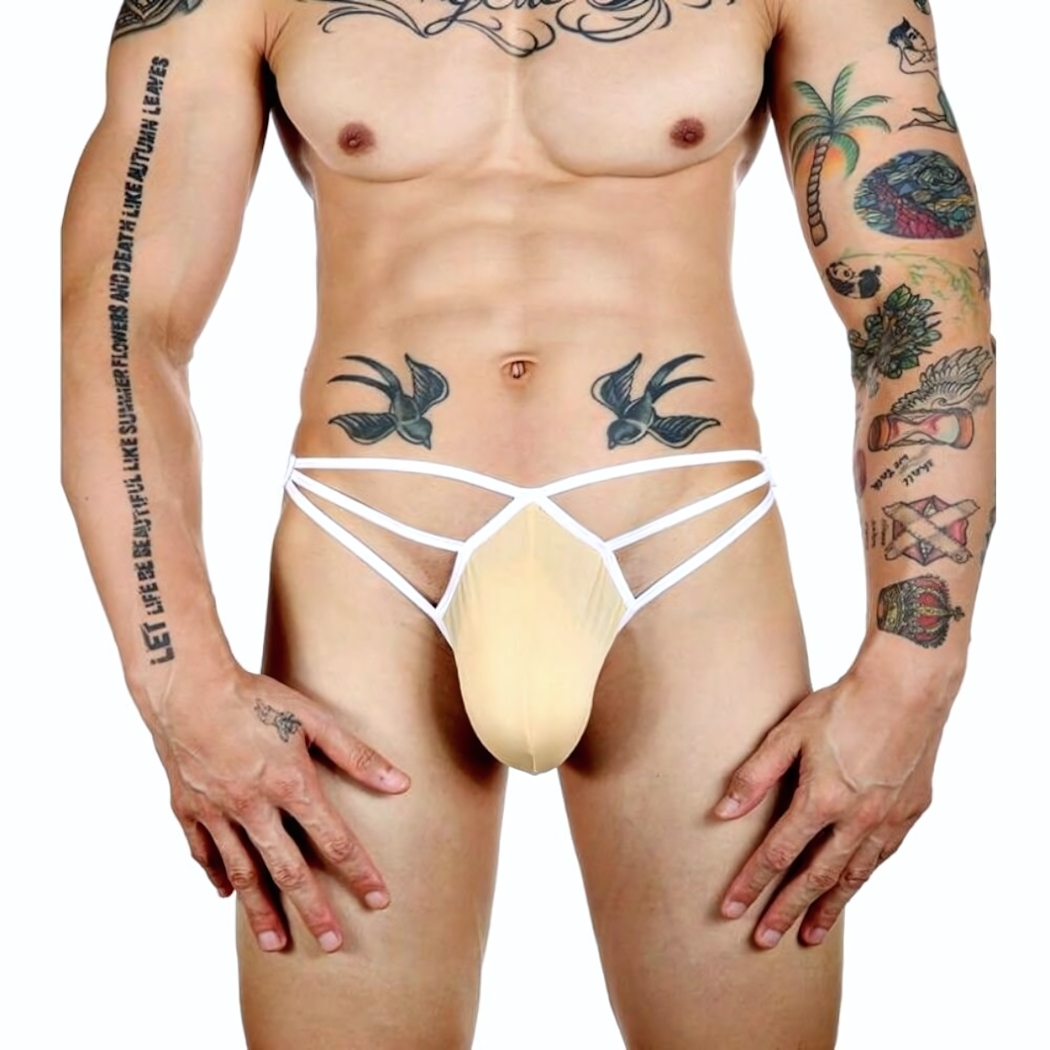 Эротичные бежевые трусы-стринги для уверенных мужчин